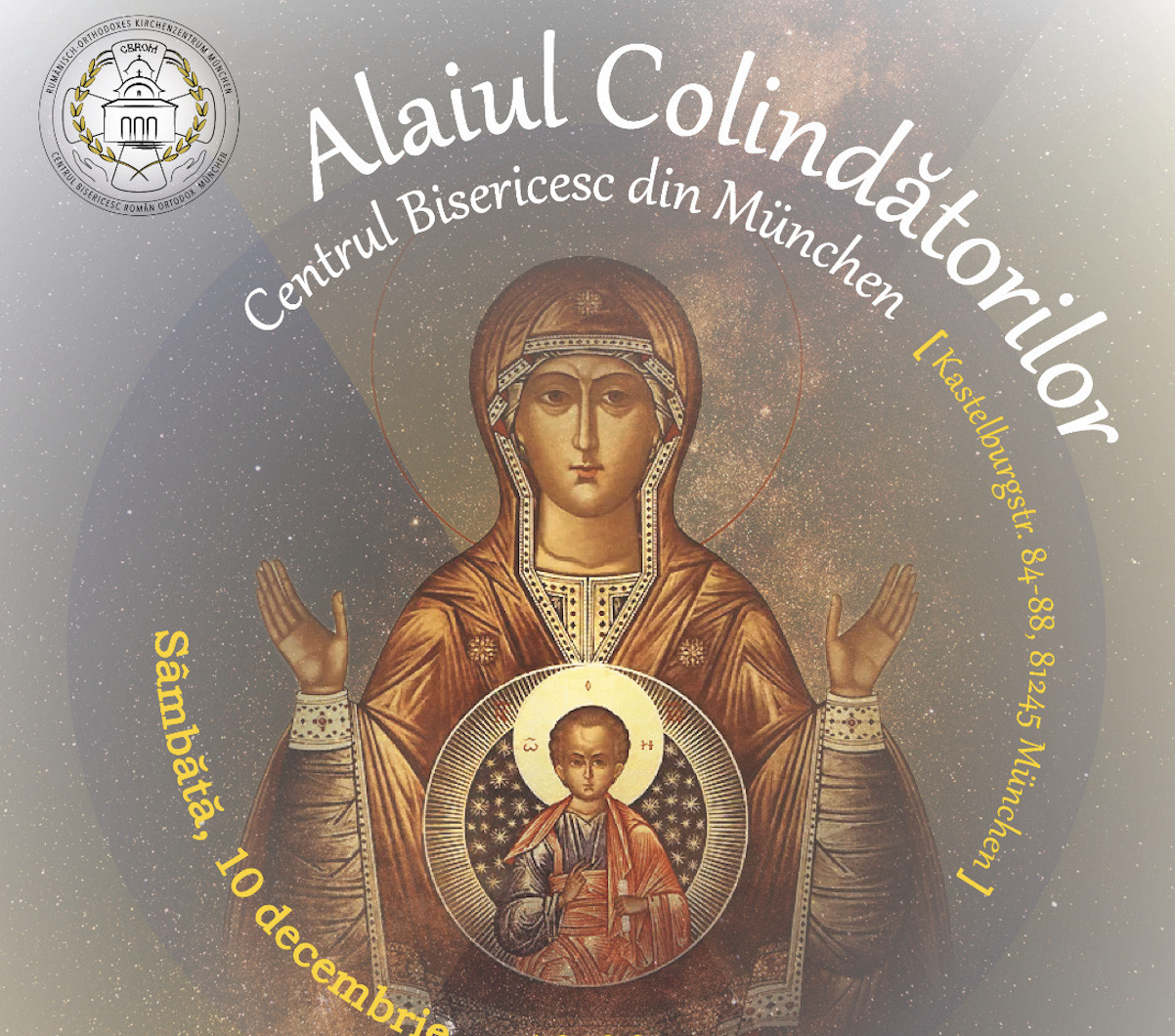Sâmbătă, 10 decembrie, Preasfințitul Părinte Episcop-vicar Sofian Braşoveanul va primi, pentru prima dată, la Așezământul Bisericesc din München, Alaiul Colindătorilor.Ziua va începe cu Sf. Liturghie (de la ora 10:00), în cadrul căreia preoţii veniţi cu colinda vor avea posibilitatea de a sluji, iar răspunsurile la strană vor fi date de primii colindători sosiţi în acest scop. La priceasnă, se vor cânta, de asemenea, colinde, iar, în continuare, grupurile de preoţi şi credincioşi vor putea să vestească, prin vers şi cânt, Naşterea Domnului, având şi posibilitatea de a se asculta şi aprecia unii pe alţii.