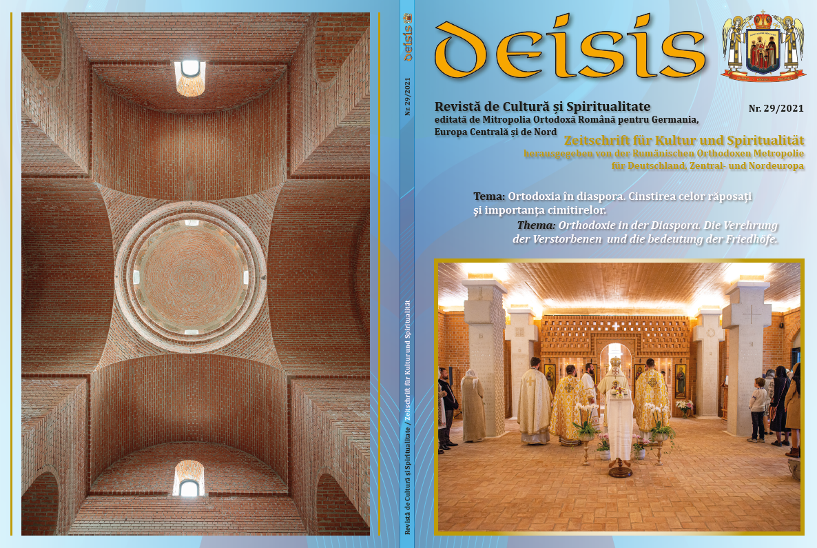 A apărut noul număr al revistei Deisis (29/2021), dedicat Ortodoxiei din diaspora, cinstirii celor adormiți în Domnul, precum și importanței spirituale și culturale a cimitirelor. Tematica revistei se referă la cele două teme principale proclamate de Sfântul Sinod pentru anul 2021, dar conține și două articole importante dedicate tinerilor din diaspora românească. Este o ediție specială dedicată chiar celor care trăiesc în afara granițelor țării, dar cu ea în suflet, precum și cu dorul de locurile natale.