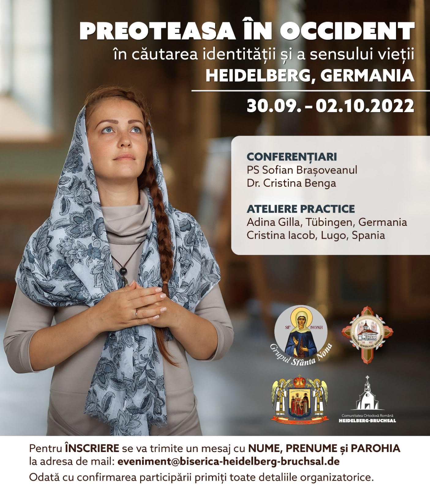 Acest eveniment este organizat de către inițiatoarele grupului de preotese „Sfânta Nona” cu înalta binecuvântare a Mitropolitului Serafim Joantă și prin implicarea susținută atât a Centrului Bisericesc Românesc din München, cât și a parohiei „Sfânta Treime” din Heidelberg. La eveniment vor participa: Episcopul Vicar Dr. Sofian Brașoveanul și doamne preotese care s-au implicat activ în buna desfășurare a acestei acțiuni. Această întâlnire vine în întâmpinarea susținerii misiunii preotului în viața de parohie.