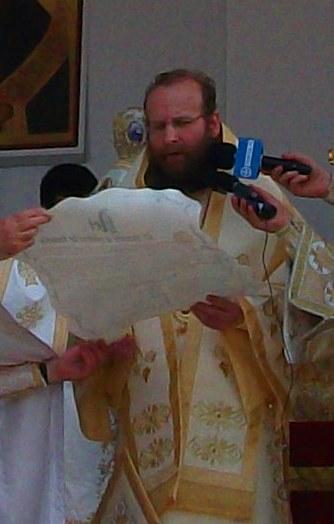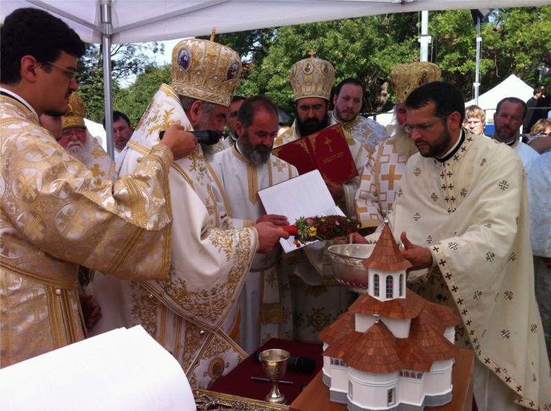 Hrisovul punerii pietrei de temelie a fost citit de către Preasfinţitul Sofian Braşoveanul, Episcop-vicar al Arhiepiscopiei Germaniei, Austriei şi Luxemburgului, care este însărcinat cu coordonarea proiectului.