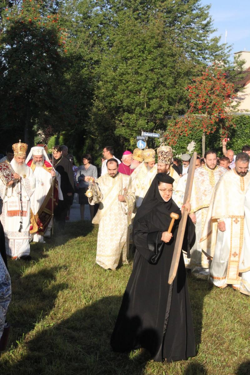 Preafericitul Părinte Daniel, Patriarhul României, a rostit un cuvânt de învăţătură intitulat: O nouă poartă a cerului în Germania, în care a evidenţiat printre altele faptul că un nou locaş de cult reprezintă pentru oameni o nouă Poartă către Cer. Preafericirea Sa a subliniat faptul că în spaţiul sacru al bisericii de zid se întâlnesc pământul cu cerul, timpul cu veşnicia, credincioşii de pe pământ cu cei din ceruri.