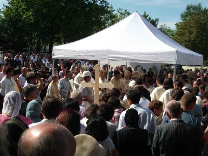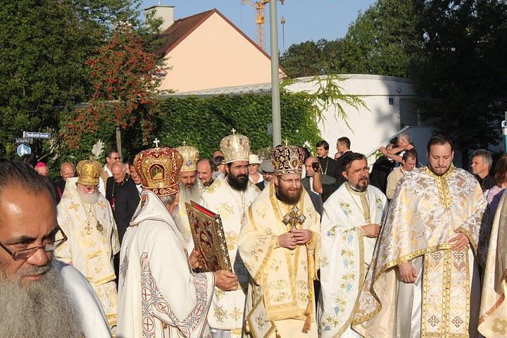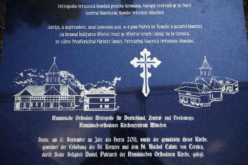 Duminică, 11 septembrie 2011, sute de credincioşi români au participat la slujba punerii pietrei de temelie pentru noul Centru Bisericesc Ortodox din München, cu hramurile Înălţarea Sfintei Cruci şi Sfântul Ierarh Calinic de la Cernica. Slujba a fost săvârşită de Preafericitul Părinte Patriarh Daniel în continuarea Sfintei Liturghii, la care au participat numeroși membri ai Sfântului Sinod al Bisericii Ortodoxe Române: Înaltpreasfințitul Teofan, Mitropolitul Moldovei și Bucovinei, Înaltpreasfințitul Laurenţiu, Mitropolitul Ardealului, Înaltpreasfințitul Serafim, Mitropolitul Ortodox Român al Germaniei, Europei Centrale și de Nord, Înaltpreasfințitul Iosif, Mitropolitul Ortodox Român al Europei Occidentale și Meridionale, Înaltpreasfinţitul Arhiepiscop Ioan, Episcopul Covasnei şi Harghitei, Preasfințitul Sofian Brașoveanul, Episcop-vicar al Arhiepiscopiei Ortodoxe Române a Germaniei, Austriei și Luxemburgului, dar şi ierarhi ortodocşi ai altor jurisdicţii naţionale din Germania: Inaltpreasfintitul Augustinos, Mitropolitul grec al Germaniei şi Exarh al Europei Centrale, care este şi preşedintele Conferinţei Episcopilor Ortodocşi din Germania, Înaltpreasfintitul Feofan, Arhiepiscopul rus al Berlinului şi al Germaniei, Preasfinţitul Constantin, Episcopul sârb al Europei Centrale şi Preasfinţitul Agapit de Stuttgart, Episcop-vicar al Arhiepiscopiei Ruse din afara graniţelor, precum și peste 30 de preoți și diaconi din Arhiepiscopia noastră şi din Bisericile Ortodoxe surori. Pentru a-l întâmpina pe Preafericirea Sa a venit şi Întâistătătorul Bisericii Ruse din Afara Granițelor, Arhiepiscopul Mark Arndt de Berlin al întregii Germanii.