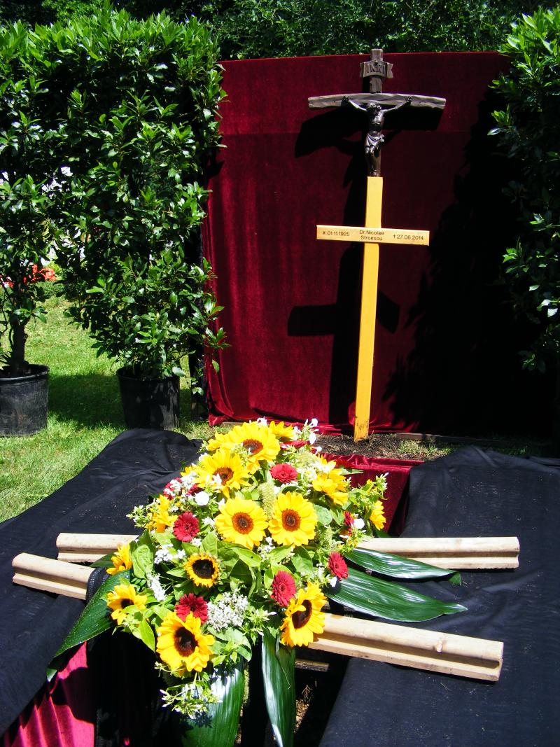 Vineri, 11 iulie 2014, a avut loc slujba înmormântării domnului Nicolae Stroescu-Stânişoară. La slujbă au participat Înaltpreasfinţitul Mitropolit Serafim Joantă şi Preasfinţitul Episcop-vicar Sofian Braşoveanul, precum şi preoţii slujitori ai parohiilor din München: Pr. Mircea Basarab, Pr. Simion Felecan şi Pr. Alexandru Nan.