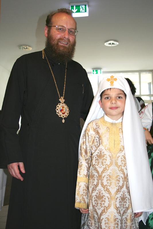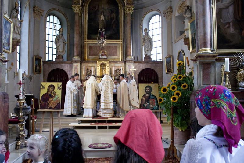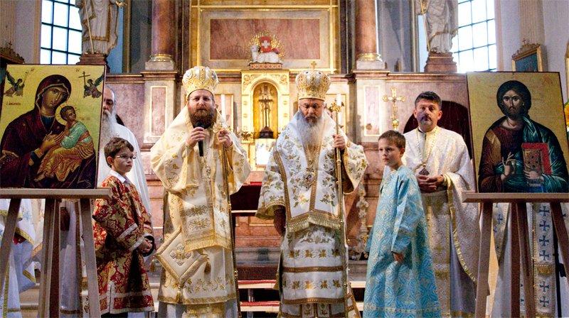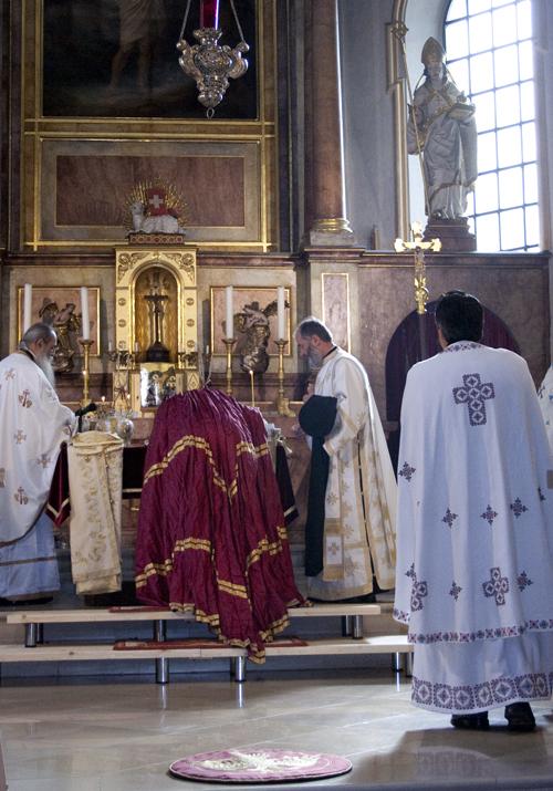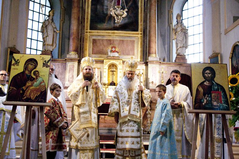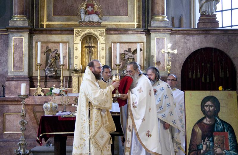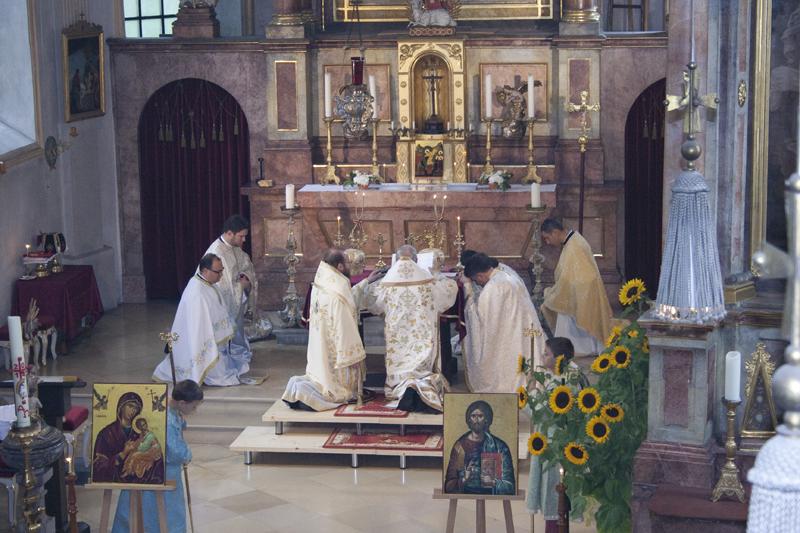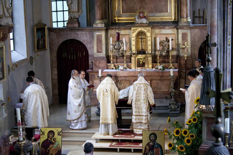 Sfânta Liturghie arhierească, ţinută în biserica Alte Haidhauser Kirche, i-a avut în frunte pe Înaltpreasfinţitul Părinte Serafim, Mitropolitul Ortodox Român al Germaniei, Europei Centrale şi de Nord şi pe Preasfinţitul Părinte Sofian Braşoveanul, Episcopul-vicar al Arhiepiscopiei Germaniei, Austriei şi Luxemburgului, înconjuraţi de un sobor de preoţi din München şi alte oraşe (Augsburg, Nürnberg, Rosenheim, Schwäbisch Gmünd, Traunreut), veniţi împreună cu credincioşi pentru a spori frumuseţea prăznuirii şi bucuria comuniunii.