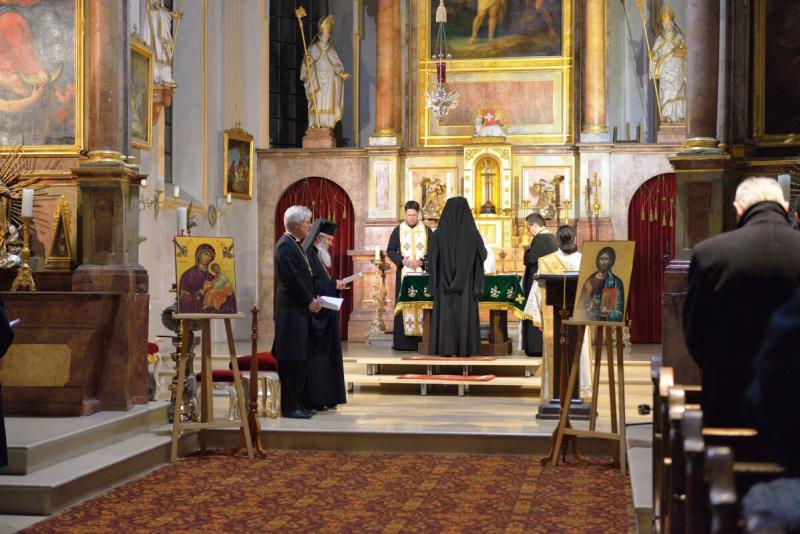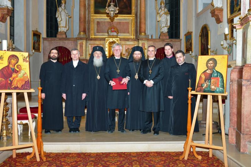 În seara zilei de 5 februarie 2015, zi în care Biserica noastră le-a pomenit pe Sf. Agata și Teodula, comunitatea ortodoxă română din München a trăit un moment deosebit. Slujba Vecerniei a fost săvârșită în biserica „Sf. Ioan Botezătorul” de către Preasfinţitul Sofian Brașoveanul, Episcop-vicar al Arhiepiscopiei Germaniei Austriei şi Luxemburgului, cu participarea Înaltpreasfinţitului Părinte Serafim, Mitropolitul Germaniei, Europei Centrale şi de Nord, a preoților români din München, alături de un număr însemnat de credincioși români. Momentul festiv a fost prilejuit de invitația adresată Excelenței Sale, Dr. Heinrich Bedford-Strohm, Episcop luteran de Bavaria și președinte al EKD-ului (Bisericii evanghelice din Germania), de a participa la slujba ortodoxă de seară şi de a primi înalta distincţie a Mitropoliei noastre.