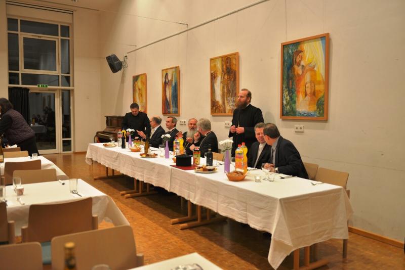 La sfârșitul slujbei Vecerniei, Înaltpreasfințitul Părinte Mitropolit Serafim a ținut un cuvânt de învățătură, în care a prezentat pe scurt situația românilor ortodocși din Germania, unii dintre ei având o pregătire foarte bună și care și-au găsit în Germania o a doua patrie. Mulți dintre cei sosiți în Germania, înainte sau după Revoluție, provin din familii mixte, fiind căsătoriți cu sași și șvabi. Astfel, pastorația acestor familii mixte reprezintă un specific pentru activitatea Bisericii Ortodoxe Române din Germania. Părintele Mitropolit Serafim a vorbit și de poziția Bisericii noastre din Germania, landul bavarez fiind primul care a recunoscut Mitropoliei Ortodoxe Române pentru Germania, Europa Centrală și de Nordul statutul de «Corporație de Drept public». Mulțumind pentru sprijinul acordat de comunitățile evanghelice care, alături de cele catolice, pun lăcașuri de cult la dispoziția parohiilor ortodoxe românești din Germania și fac astfel posibile slujbele ortodoxe românești în numeroase orașe, Înaltpreasfințitul Părinte Mitropolit Serafim a amintit și de relațiile foarte bune dintre Biserica Ortodoxă Română și Biserica luterană din Germania, între care există un Dialog oficial începând cu anul 1979.