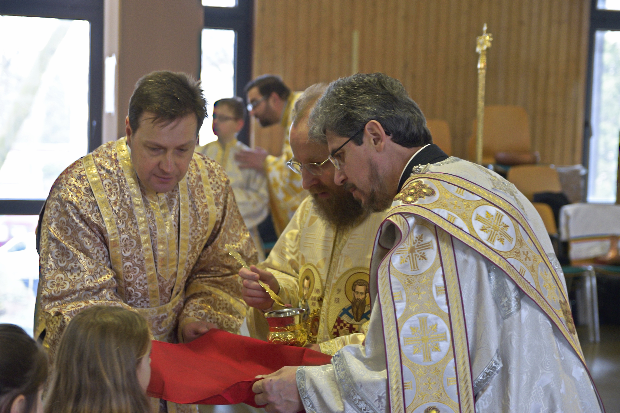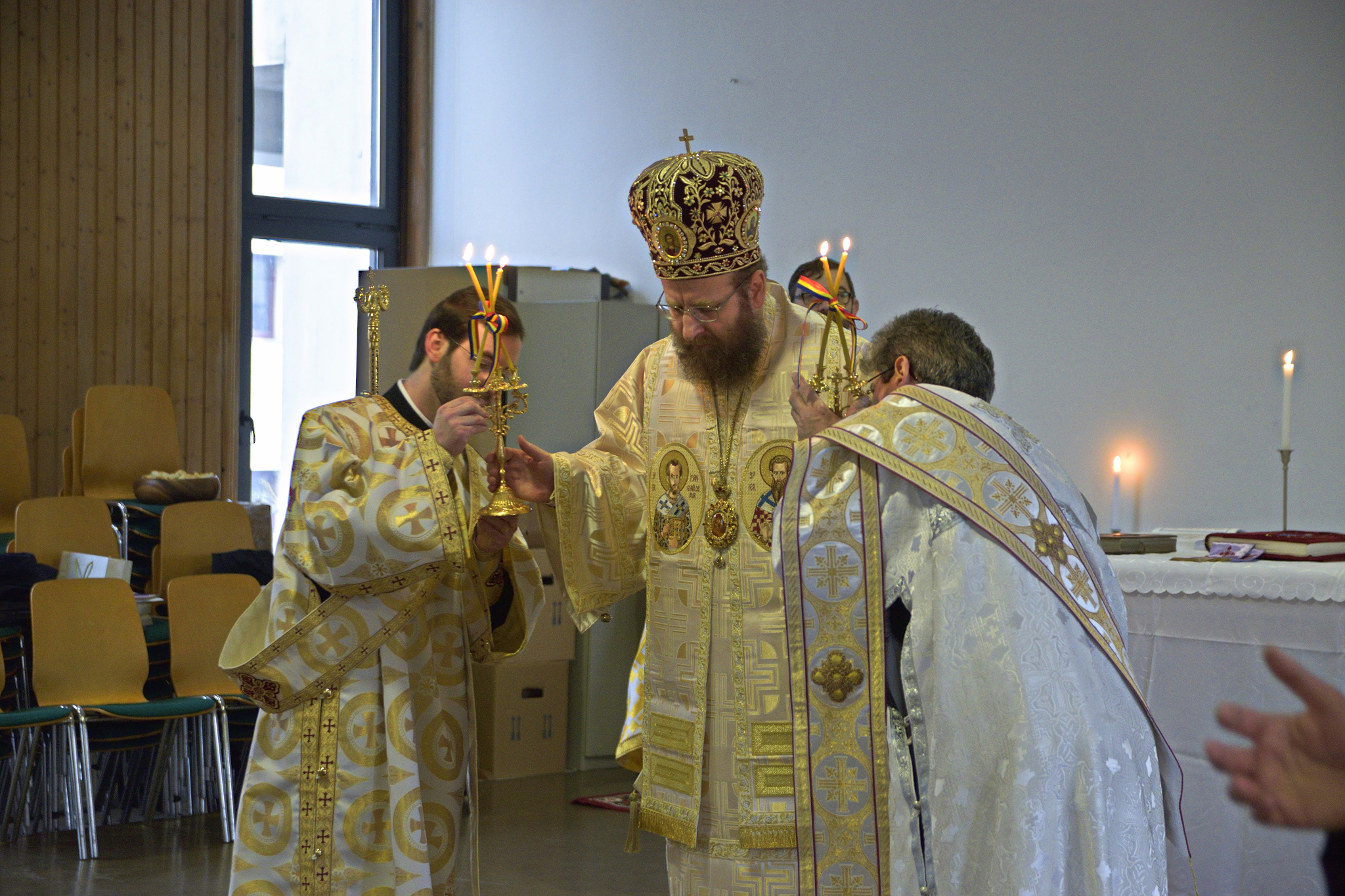 Alături de Preasfințitul Părinte Sofian a slujit părintele protopop Ștefan Anghel de la parohia din Offenbach am Main, părintele diacon George Țapciuc de la Centru Bisericesc din Munchen și părintele arhidiacon Gavril Gemănaru de la parohia din Offenbach am Main. Părintele protopop Ștefan Anghel este unul din cei mai vechi clerici ai Arhiepiscopiei Germaniei, care a trecut în revistă începutul parohiei din Offenbach de acum peste 40 de ani și dezvoltarea parohiei din Offenbach, parohie de elită a Arhiepiscopiei Germaniei care deține locaș propriu de slujire și alte spații adiacente unde se desfășoară mai multe proiecte. Până de curând credincioșii din zona Frankfurt aveau doar parohia din Offenbach în apropiere, parohia care a devenit neâncăpătoare pentru afluxul masiv de români din această parte a Germaniei.