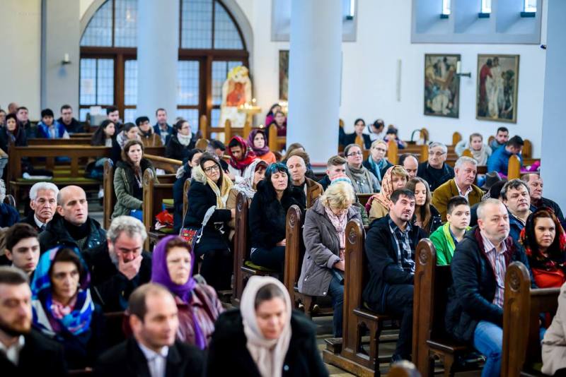 La sfârșitul Sfintei Liturghii părintele paroh a mulțumit Prea Sfinției Sale, preoților împreună slujitori, credincioșilor prezenți în număr mare, precum și preotului romano-catolic Michael Ortwald, prin bunăvoința căruia, parohia noastră își poate desfășura slujbele în frumoasa biserică Sfânta Barbara din Dortmund. Gazda noastră a primit în dar o icoană a Sfintei Învieri ca semn de mulțumire pentru bunăvoința și deschiderea lor pentru credincioșii ortodocși români din Dortmund. Părintele Michael Ortwald a mulțumit pentru frumoasa icoană și a subliniat faptul că prin prezența noastră în biserica lor a început să cunoască îndeaproape Ortodoxia.