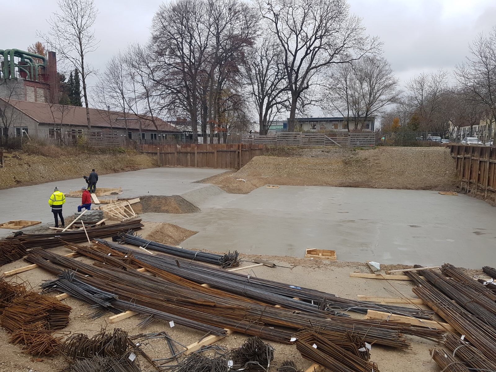 În zilele următoare se va monta reţeaua de împământare şi se va turna stratul de egalizare, apoi se vor monta straturile de izolaţie hidrofugă şi se vor pregăti cofrajul şi armătura în vederea turnării radierului celor două clădiri. Aceste lucrări sunt programate să fie executate până în jurul datei de 20 decembrie 2017, dacă vor permite şi condiţiile meteorologice.