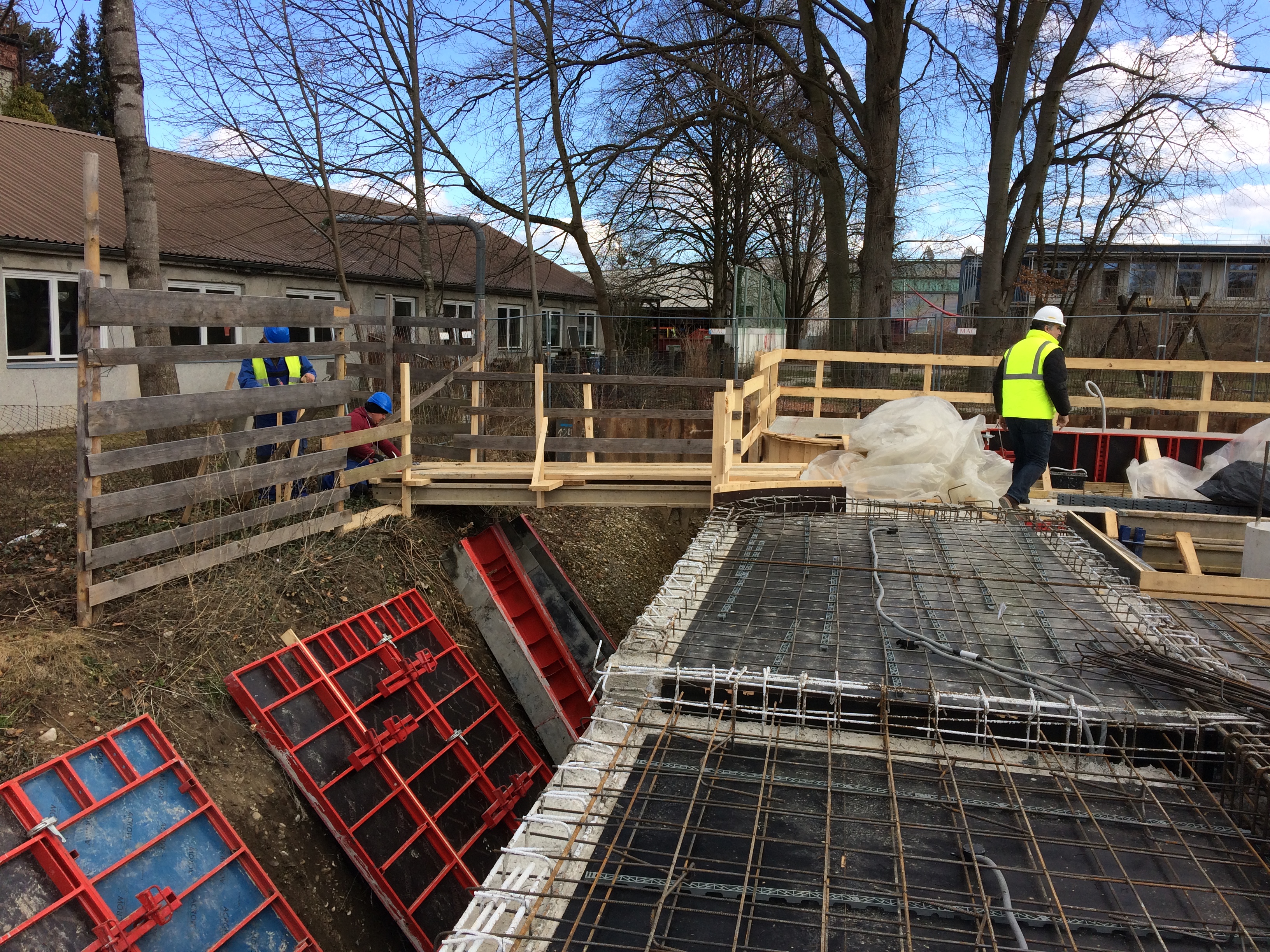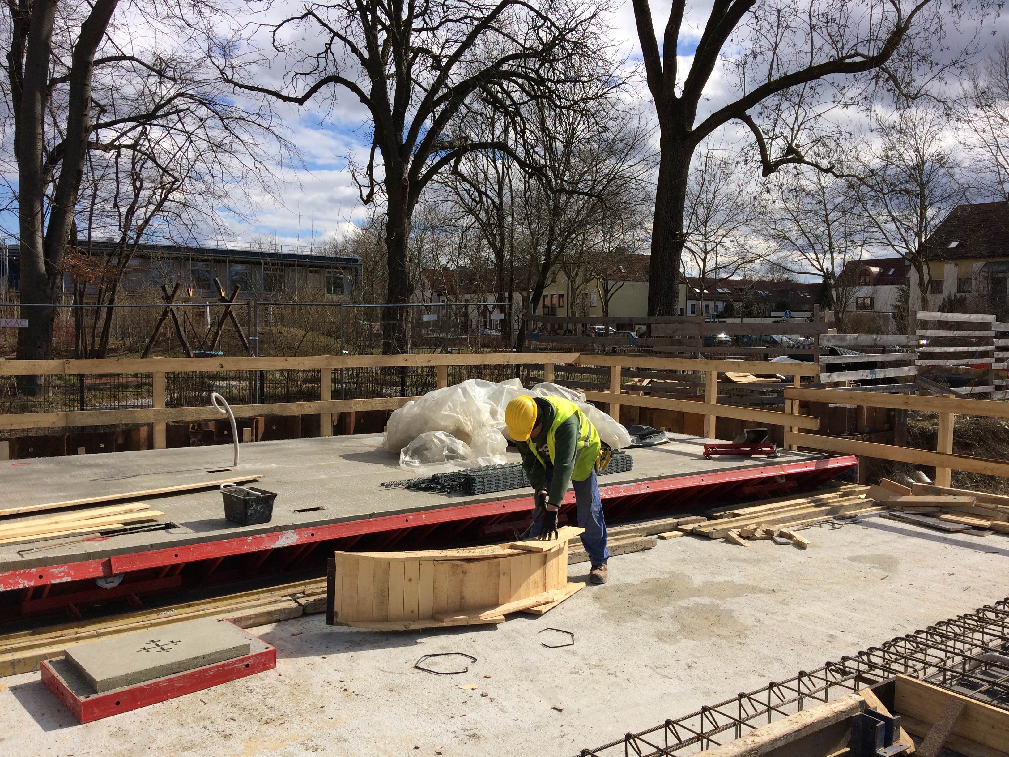 Cu antreprenorul de lucrări de terasamente s-a convenit, că se vor începe umpluturile și tragerea palplanșelor din teren pe partea de sud și de est imediat după Paștile catolice/evanghelice, totodată plasându-se primele inele ale puțurilor de infiltrare a apelor pluviale în aceste zone.