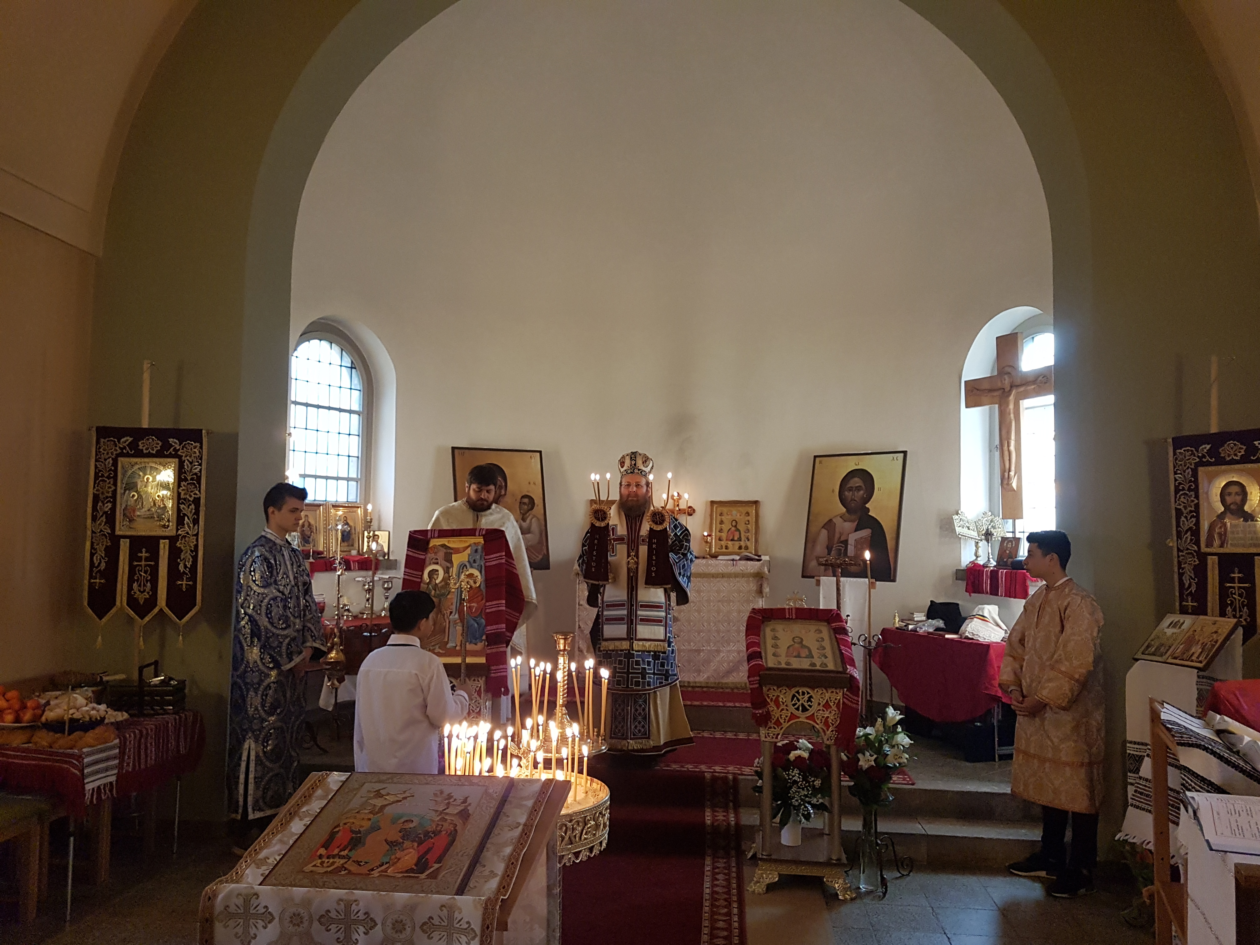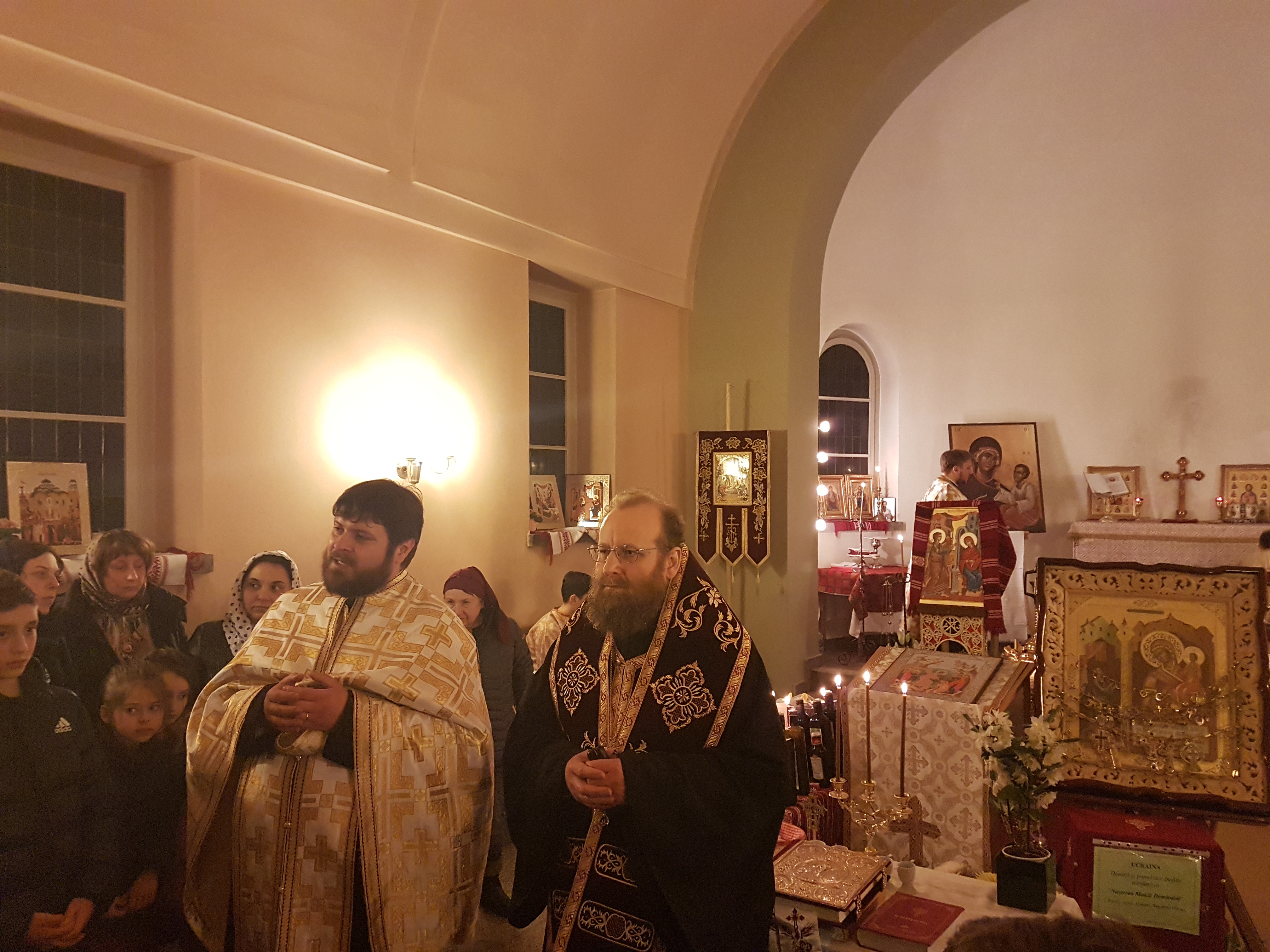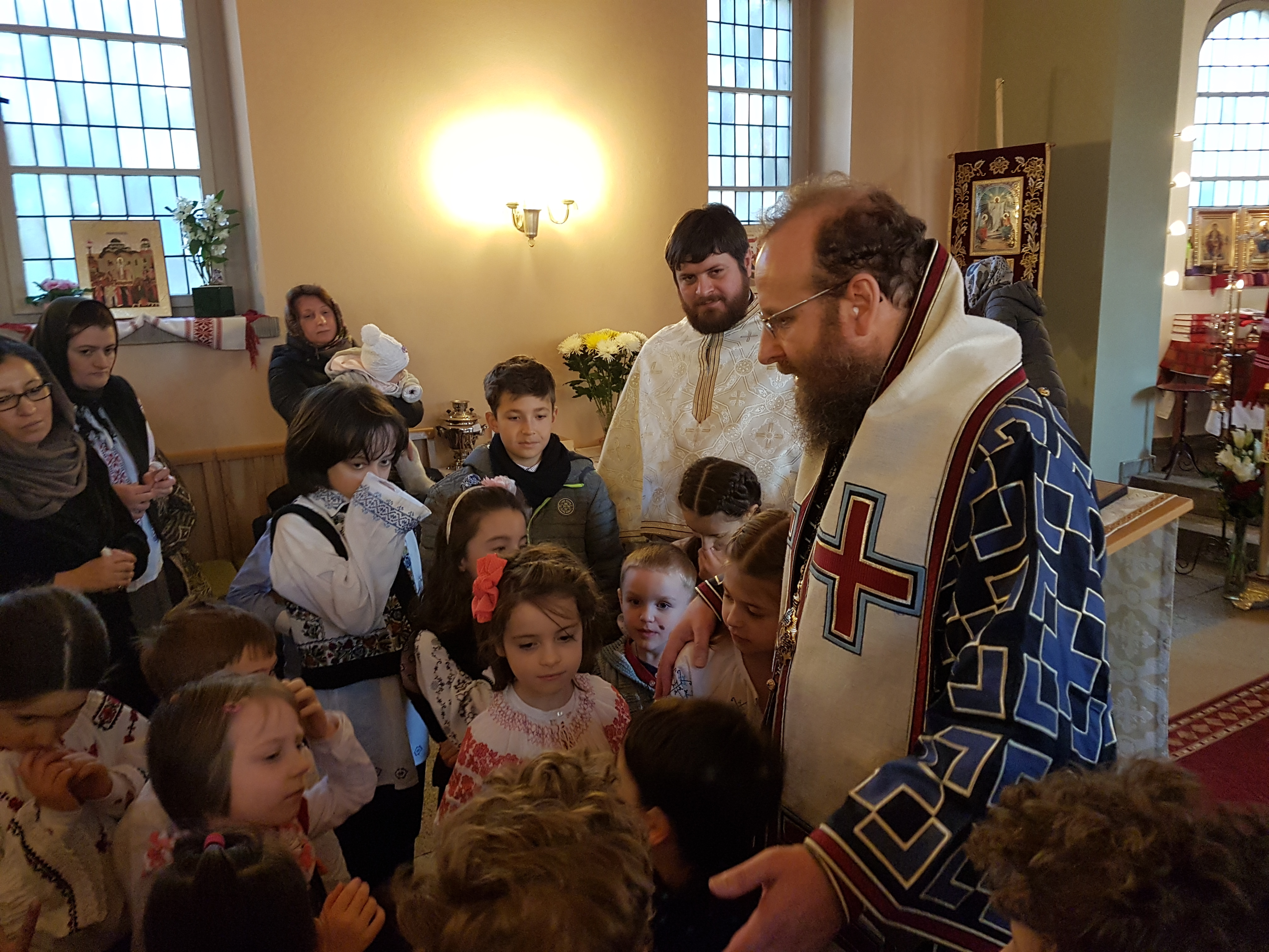 Încă de sâmbătă seara, Preasfinţitul Părinte Sofian, alături de un sobor de preoţi, alcătuit din Ierom. Dr. Athanasie Ulea de la Parohia ortodoxă română din Chemnitz, Părintele Bogdan Buta din Erfurt, Părintele Teodor Mustea din Halle şi părintele paroh Sebastian Schipor au săvârşit împreună Taina Sfântului Maslu, unde peste 100 de credincioşi s-au bucurat de harul vindecător al acestei Sfinte Taine şi de cuvântul pătrunzător şi de suflet folositor al Preasfinţitului. Cuvântul de învăţătură a debutat cu un îndemn la curajul de a lucra binele şi virtutea fără a ne înfricoşa sau a ne timora în faţa vicisitudinilor unei vieţi în străinătate, într-un mediu care nu favorizează aproape deloc păstrarea tradiţiilor creştineşti şi care poate deveni, de multe ori, ostil unei vieţi curate şi conduse de credinţă. Sfaturi legate de viaţa de familie, de creşterea copiilor în frica şi iubirea de Dumnezeu, îndemnul la o iubire jertfelnică au constituit puncte ale unei învăţături care a pătruns în inimile credincioşilor din Dresda şi ale oaspeţilor veniţi din parohiiile vecine, lucru ce se putea uşor observa din entuziasmul cu care a fost întâmpinat Preasfinţitul şi a doua zi, la Sfânta Liturghie.