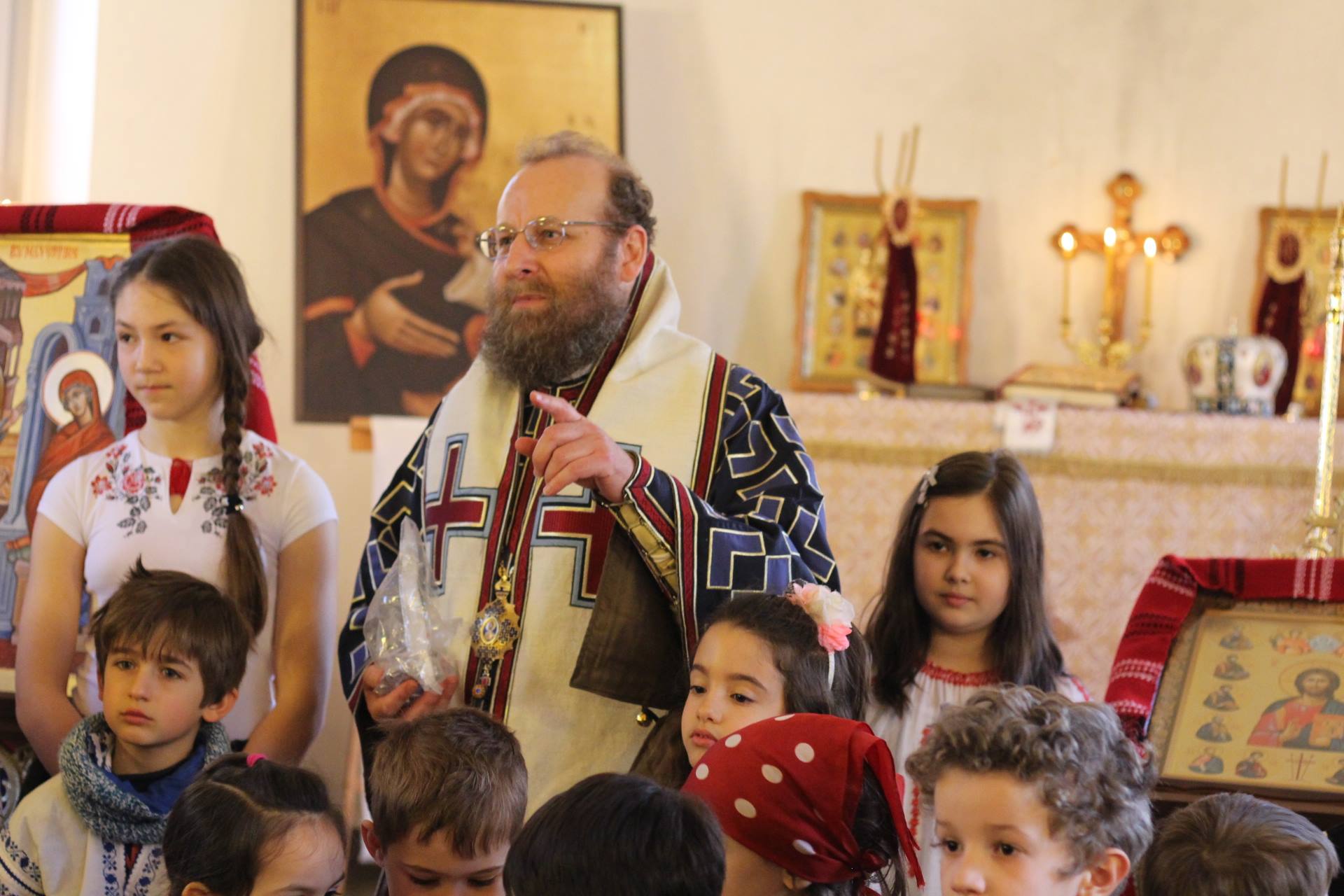 În ziua Praznicului, Preasfinţitul Sofian Braşoveanul a săvârşit Sfânta Liturghie, urmată de un cuvânt de învăţătură ce avea să completeze îndemnurile din seara precedentă, iar copiii din corul parohiei au dorit să-i facă, la rându-le, un cadou, şi i-au încântat atât pe Preasfinţitul, cât şi pe credincioşii de faţă, cu un program de cântece şi poezii dedicate Maicii Domnului, în special, şi tuturor mamelor, în general.
