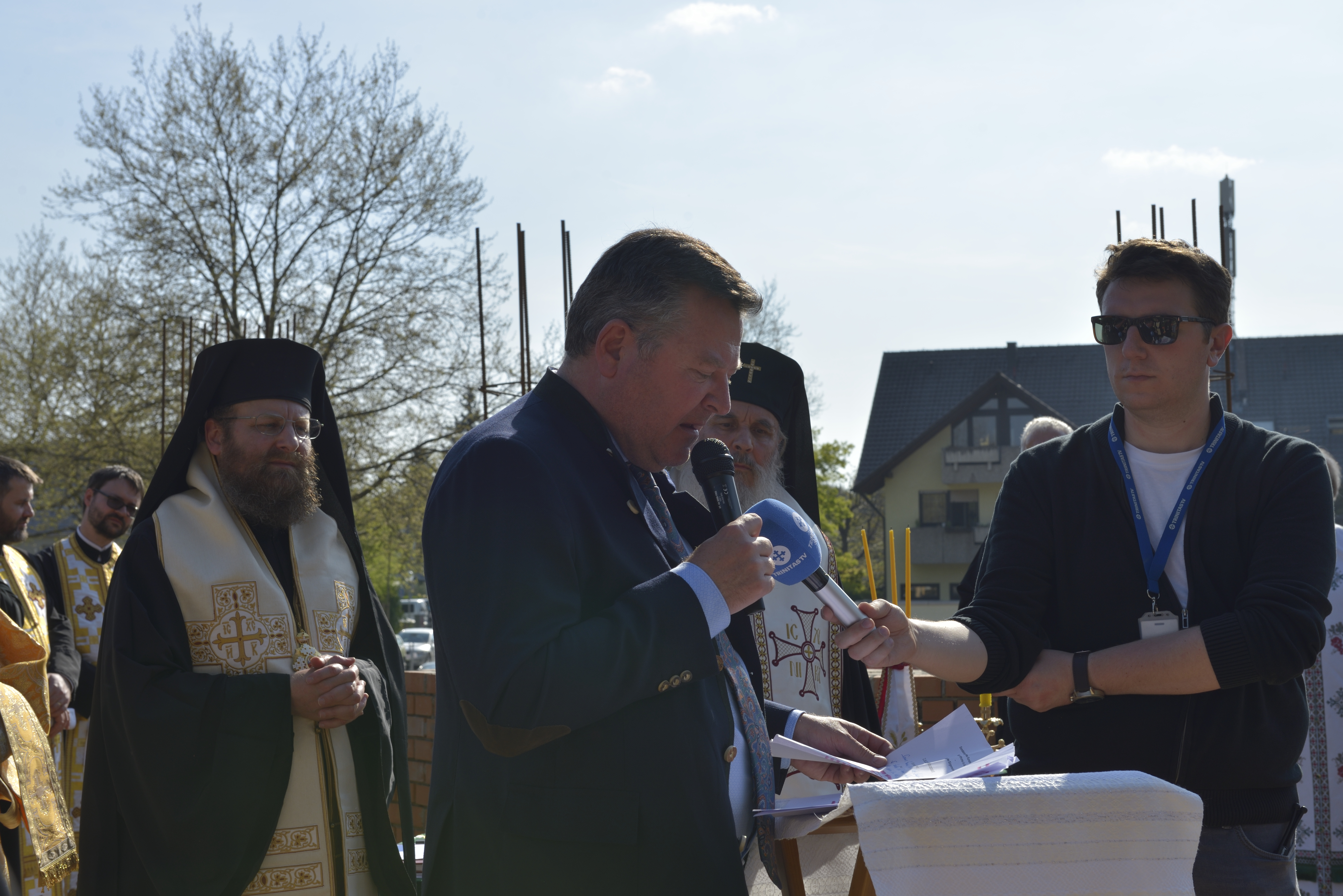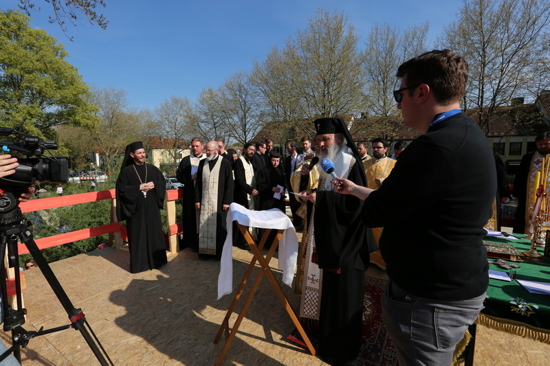 Șantierul viitorului Așezământ Bisericesc Românesc din München s-a aflat în atmosferă de sărbătoare sâmbătă, 21 aprilie, când ÎPS Părinte Mitropolit Serafim și PS Părinte Episcop-vicar Sofian Brașoveanul, împreună cu un sobor de preoți și diaconi, precum și numeroși credincioși români din München și din alte parohii din Germania și Austria au participat la o slujbă de mulțumire adusă lui Dumnezeu şi de binecuvântare a lucrărilor de construcţie.