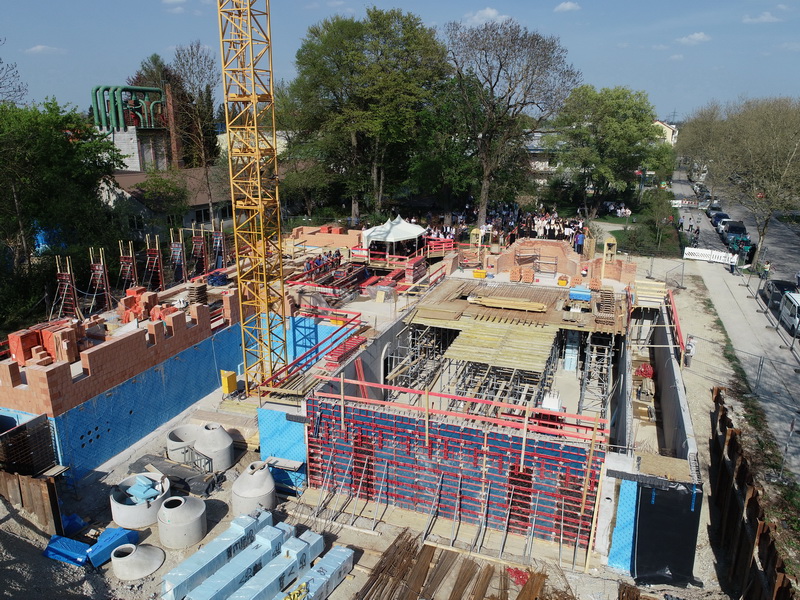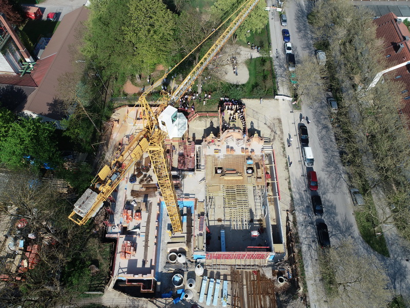 Lucrările de construcţie la Aşezământul Bisericesc din Kastelburgstr. 84-88, 81245 München-Aubing, au fost reluate la scurtă vreme după Sărbătoarea Învierii Domnului și avansează conform graficului de execuţie. După efectuarea lucrărilor de la subsolul bisericii și al viitoarei reședințe episcopale, muncitorii de pe șantier au început ridicarea zidurilor bisericii. Cu nădejde că proiectul va fi dus la bun sfârșit, la 21 aprilie 2018, piatra fundamentală sfinţită de Patriarhul României în urmă cu șase ani și jumătate împreună cu hrisovul care documentează evenimentul de atunci au fost așezate de Înaltpreasfințitul Părinte Mitropolit Serafim împreună cu Preasfințitul Episcop-vicar Sofian Brașoveanul în în zidul absidei centrale a altarului bisericii.