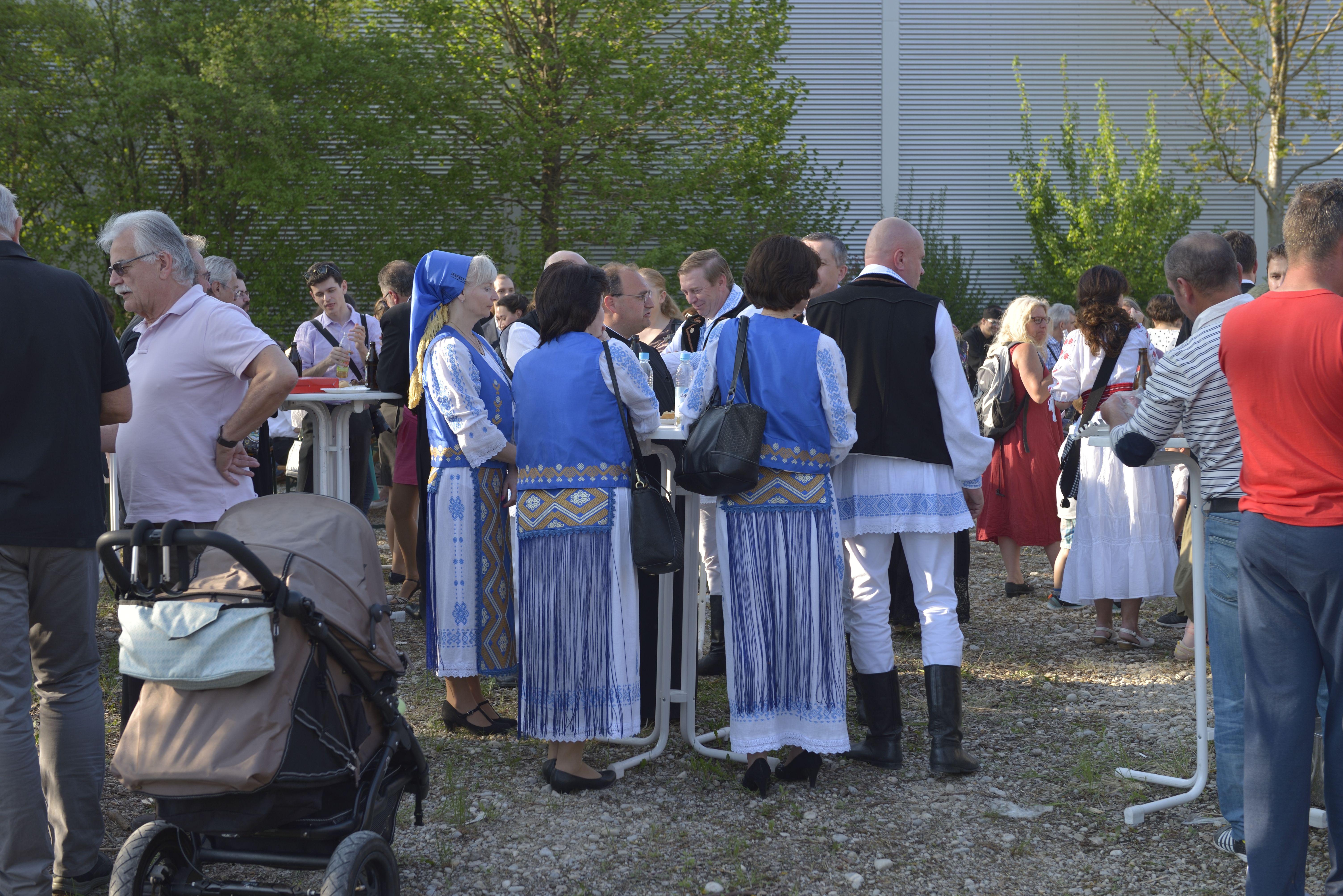Au luat cuvântul domnul Josef Schmid, vceprimar al oraşului München, doamna dr. Gabriele Rüttiger, directoarea departamentului Principii şi Strategie al Arhiepiscopiei Catolice de München şi Freising, dl. Consilier bisericesc Raphael Quant, referent al Bisericii Evanghelice pentru relații ecumenice cu Europa Răsăriteană, Excelența Sa, doamna Ramona Chiriac, Consulul General al României la München, precum și domnul consul dr. Iulian Costache, reprezentantul Ambasadorului României la Berlin. Printre invitații la acest eveniment s-au numărat și Alteța sa Regală, Ducele Franz al Bavariei, mai mulți membri din Curatoriul pentru sprijinul construcției Așezământului, reprezentanți ai Bisericilor Ortodoxe surori din München, reprezentanţi ai parohiilor catolice şi evenghelice din Aubing, vecini din jurul Aşezământului în construcţie, prieteni şi susţinători ai proiectului.