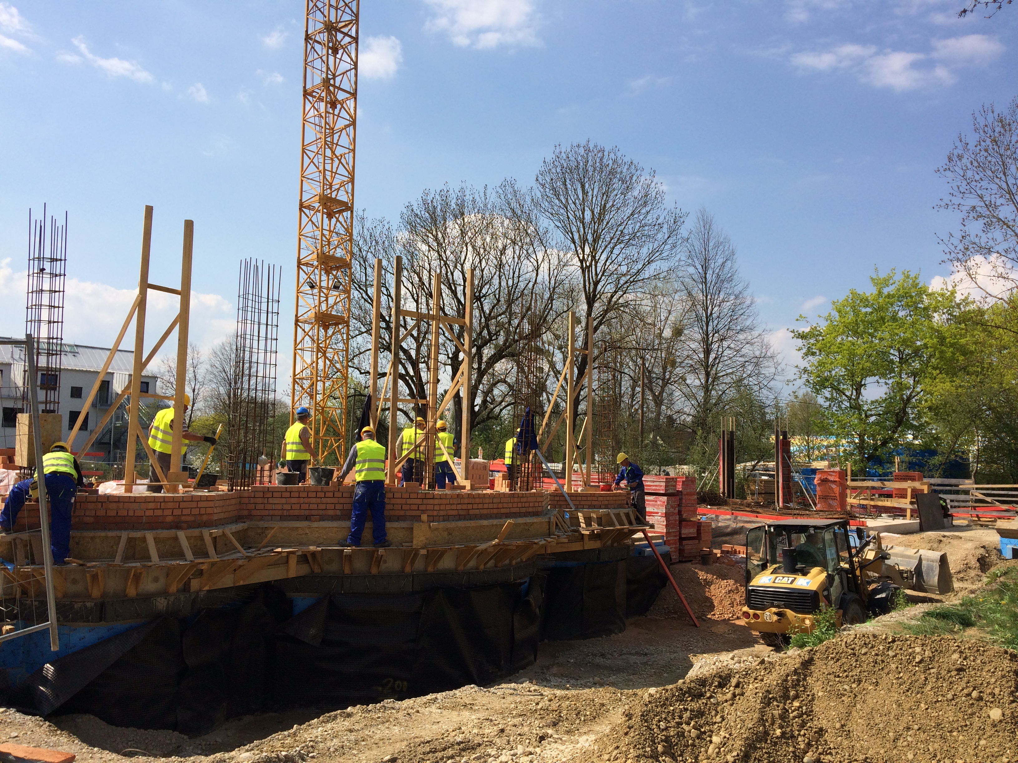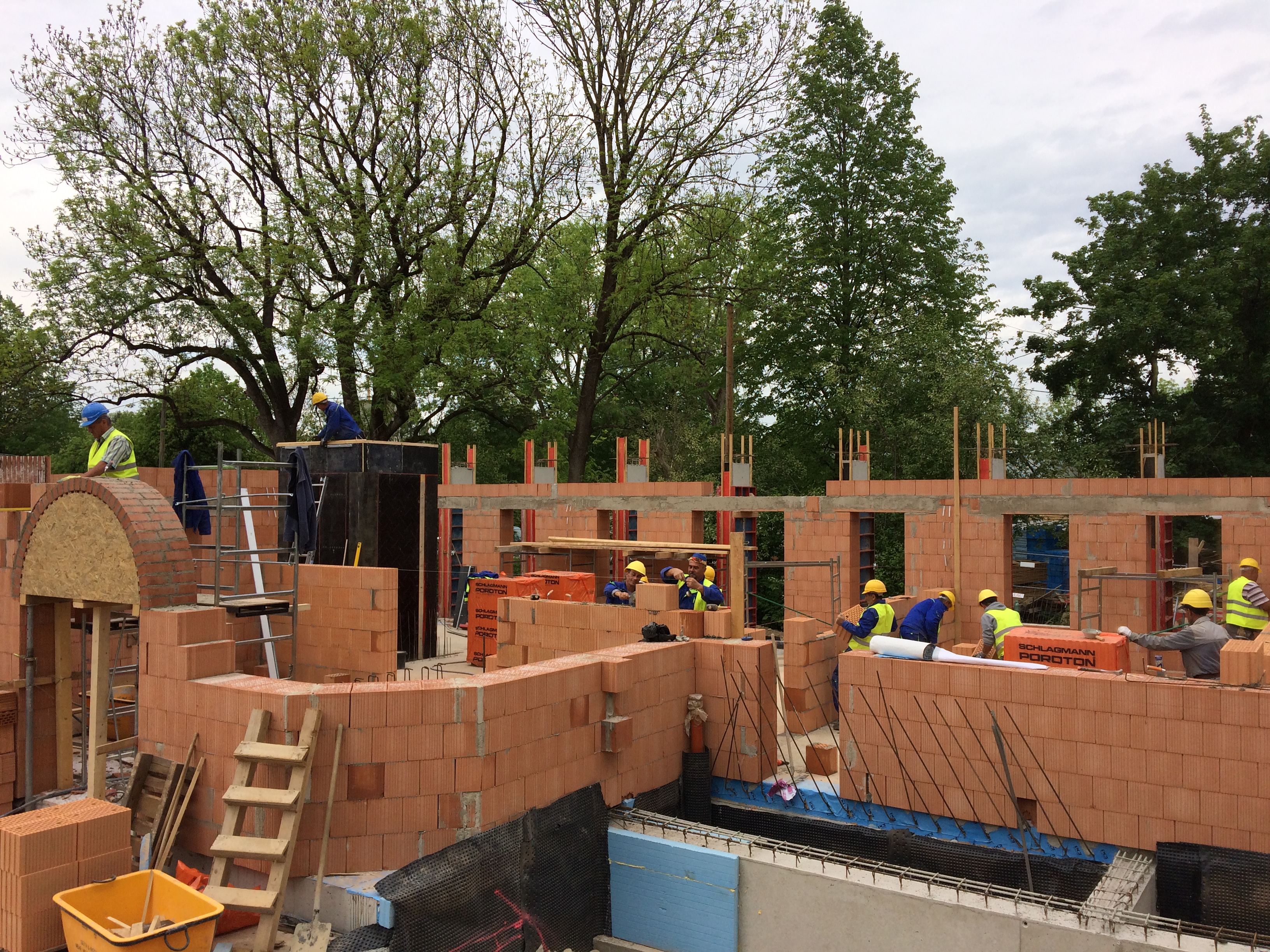 În perioada următoare, pe lângă continuarea zidăriei la corpurile A şi C, se vor monta în teren primele inele ale puţurilor de infiltrare a apelor pluviale şi se vor începe lucrările de excavare şi terasament, iar ulterior de betonări la nivelul subsolului, la corpul B (centrul parohial-comunitar).