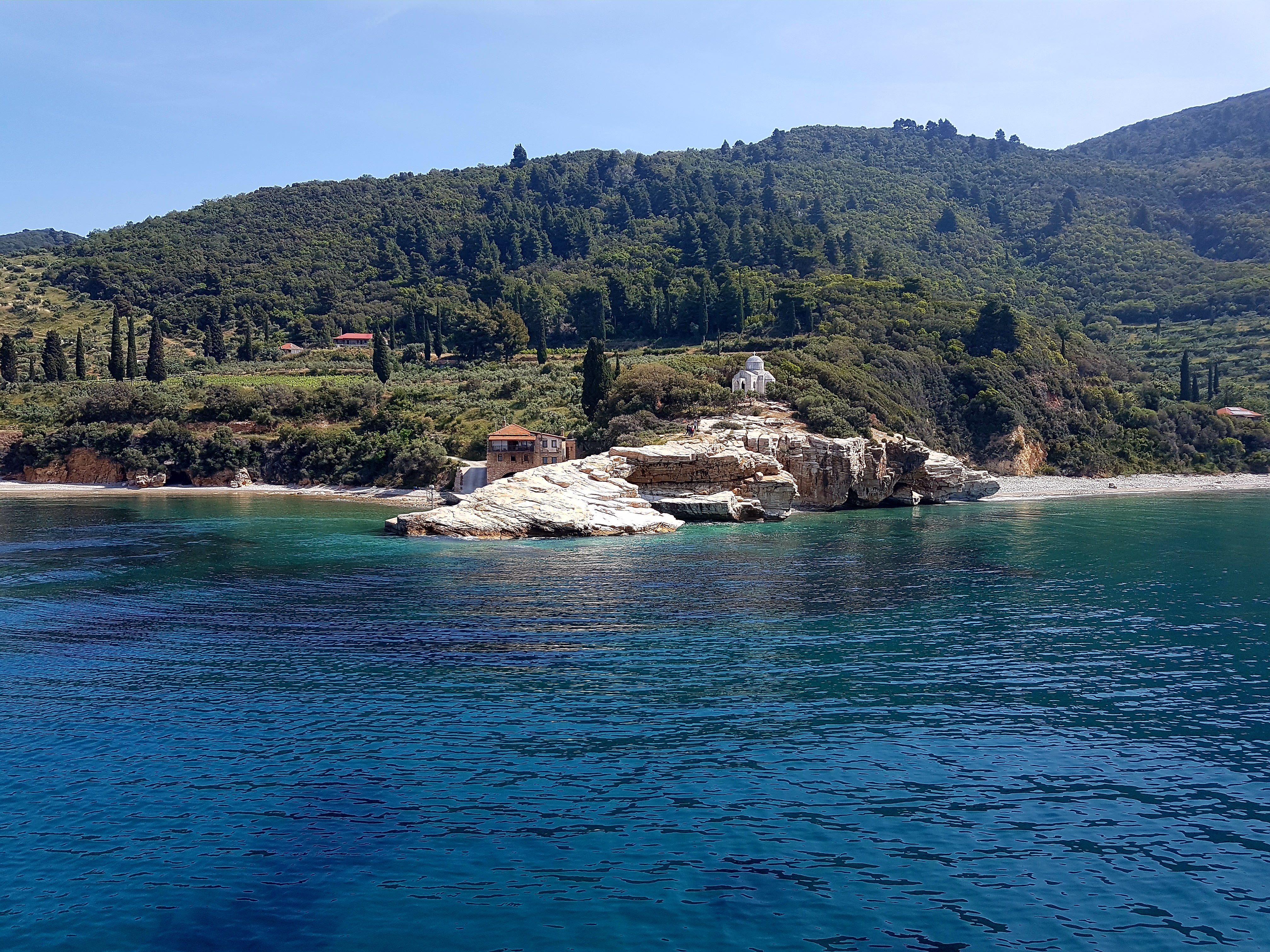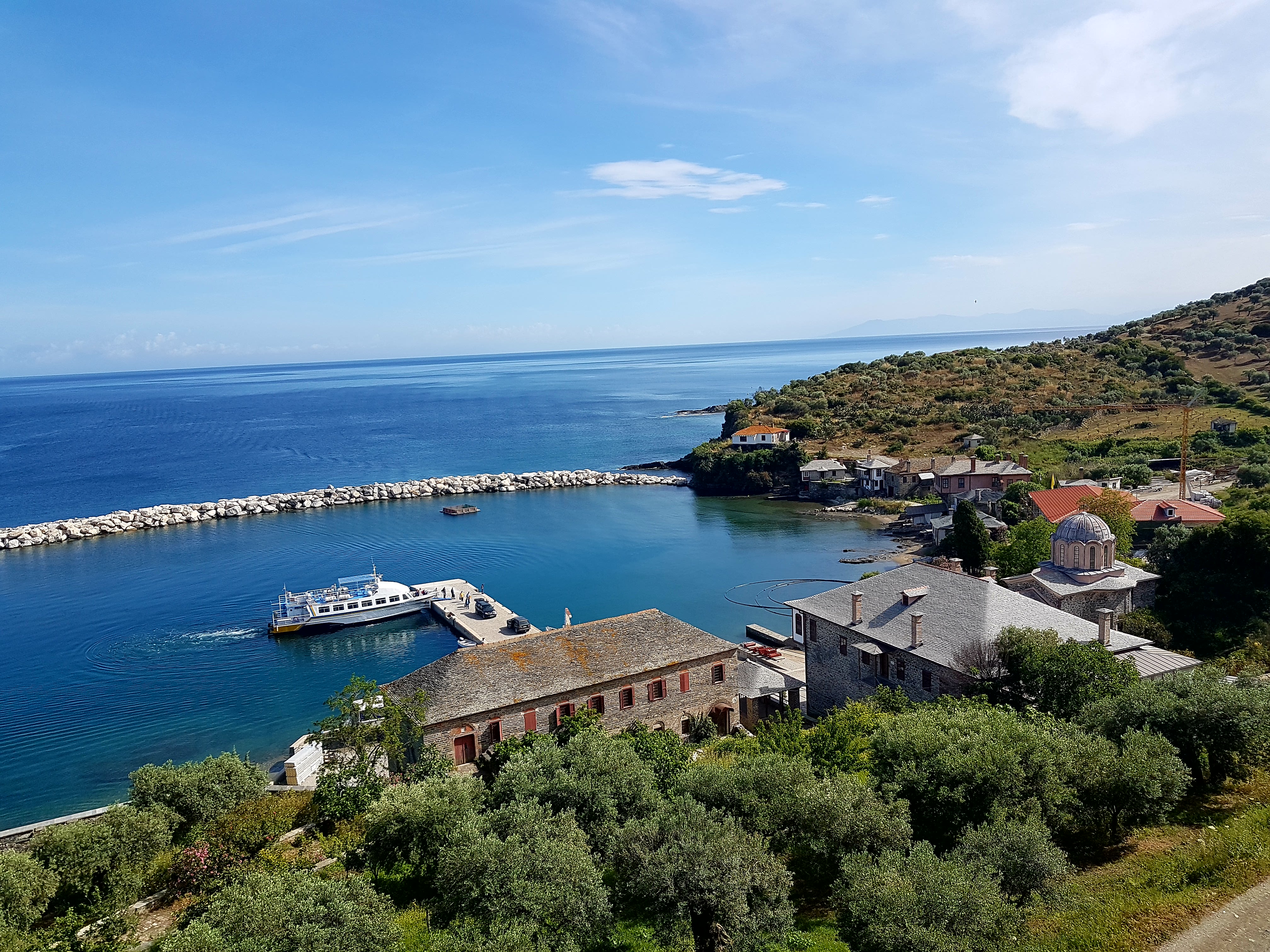 Luni, 14 mai, membri grupului au plecat din toate părțile Germaniei, din Austria și România pentru a ajunge la Ouranopolis, locul de unde se face plecarea spre Sfântul Munte. După debarcarea la Dafne, portul Sfântului Munte, marţi, 15 mai, prima oprire a fost în Caries, „capitala” Muntelui Athos. Aici a fost vizitată Biserica Protaton, cu binecunoscutele fresce ale lui Manuil Panselinos, datând din jurul anului 1290. Tot aici s-a făcut închinarea la icoana „Axion Estin” (Cuvine-se cu adevărat) a Maicii Domnului, cea mai cunoscută icoană din Sfântul Munte Athos. După cazarea la Mănăstirea Cutlumuş, fostă lavră a moldovlahilor în perioada medievală, care se află în apropierea capitalei, grupul a coborât spre chilia Panaguda, locul unde s-a nevoit Sfântul Paisie Aghioritul, unul dintre cei mai iubiți sfinți contemporani. Seara a avut loc vecernia, urmată de o prezentare a mănăstirii și închinarea la Sfintele Moaște, dintre care amintim o părticică din Sfânta Cruce, piciorul Sfintei Ana, o mână a Sfântului Grigorie Teologul și capul Sfântului Alipie. Dintre ctitorii Mănăstirii Cutlumuș fac parte și domnitorii Alexandru Basarab și Ioan Vladislav ai Țării Românești.
