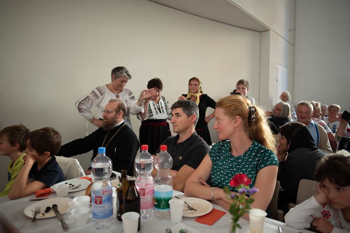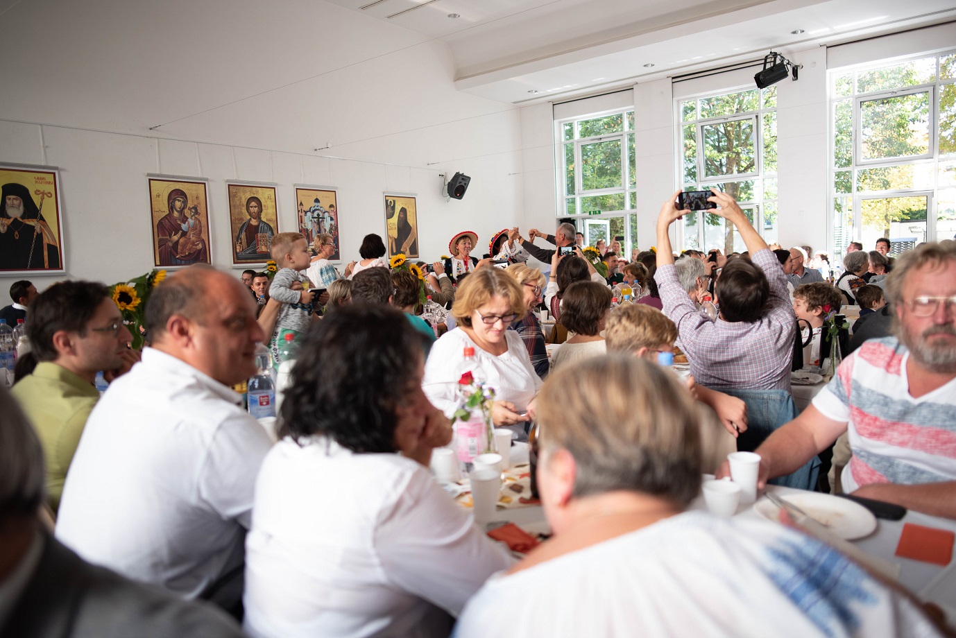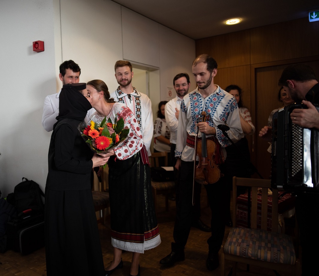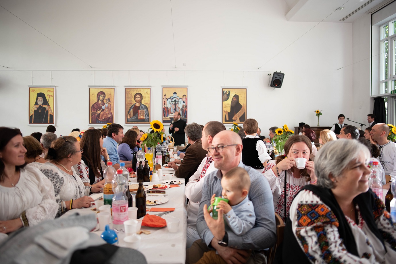 Bucuria comuniunii din biserică s-a continuat la agapa în cadrul căreia a fost prezentat un frumos şi variat program artistic. Maica Onufria împreună cu "Trupa Virgula" au prezentat pe scurt o şezătoare românească, întregită şi continuată de mai mulţi tineri talentaţi, care au cântat atât vocal cât şi instrumental spre bucuria şi încântarea participanţilor. Copiii nu s-au lăsat nici ei mai prejos şi au completat programul cu vioiciunea lor.