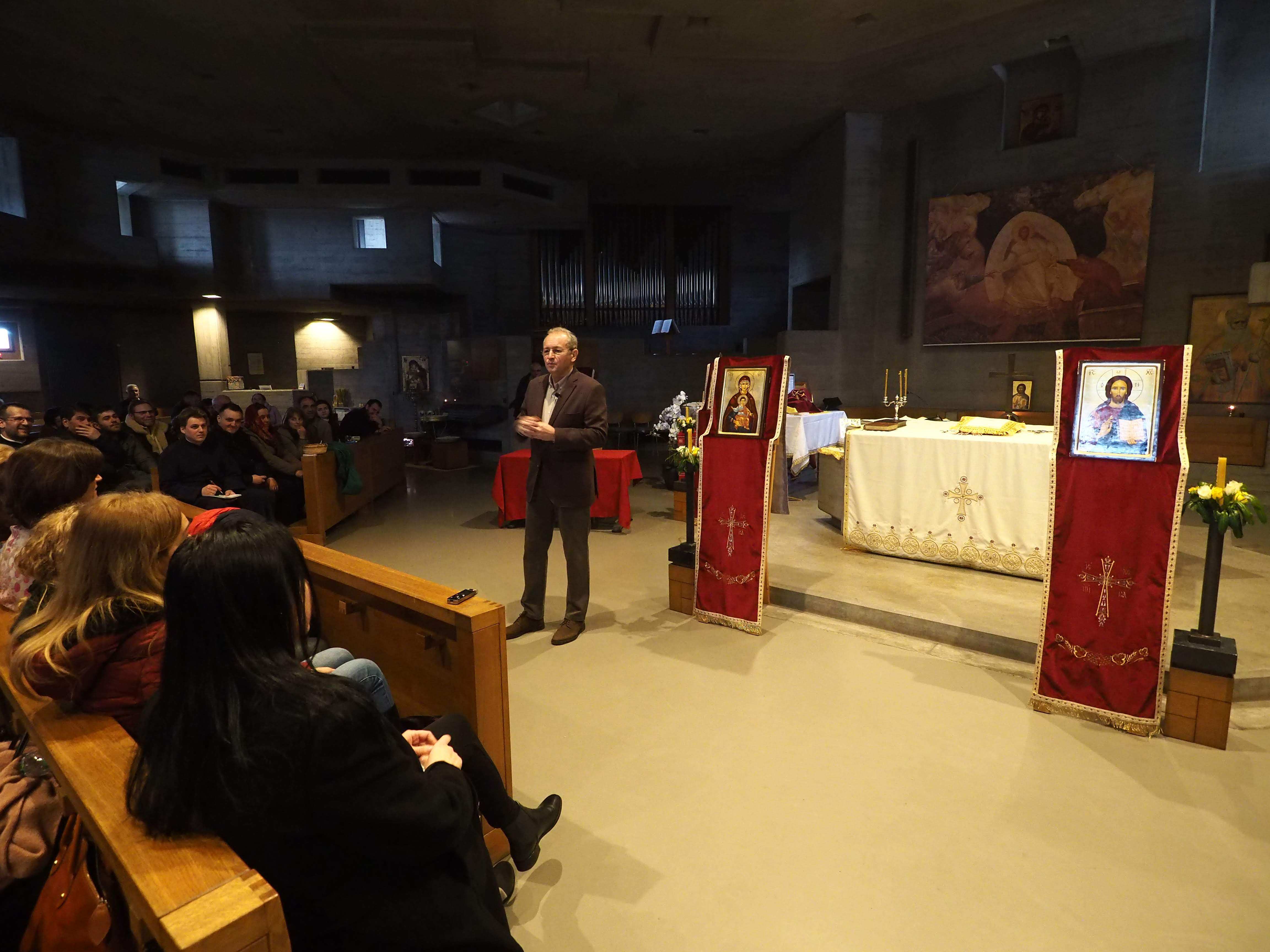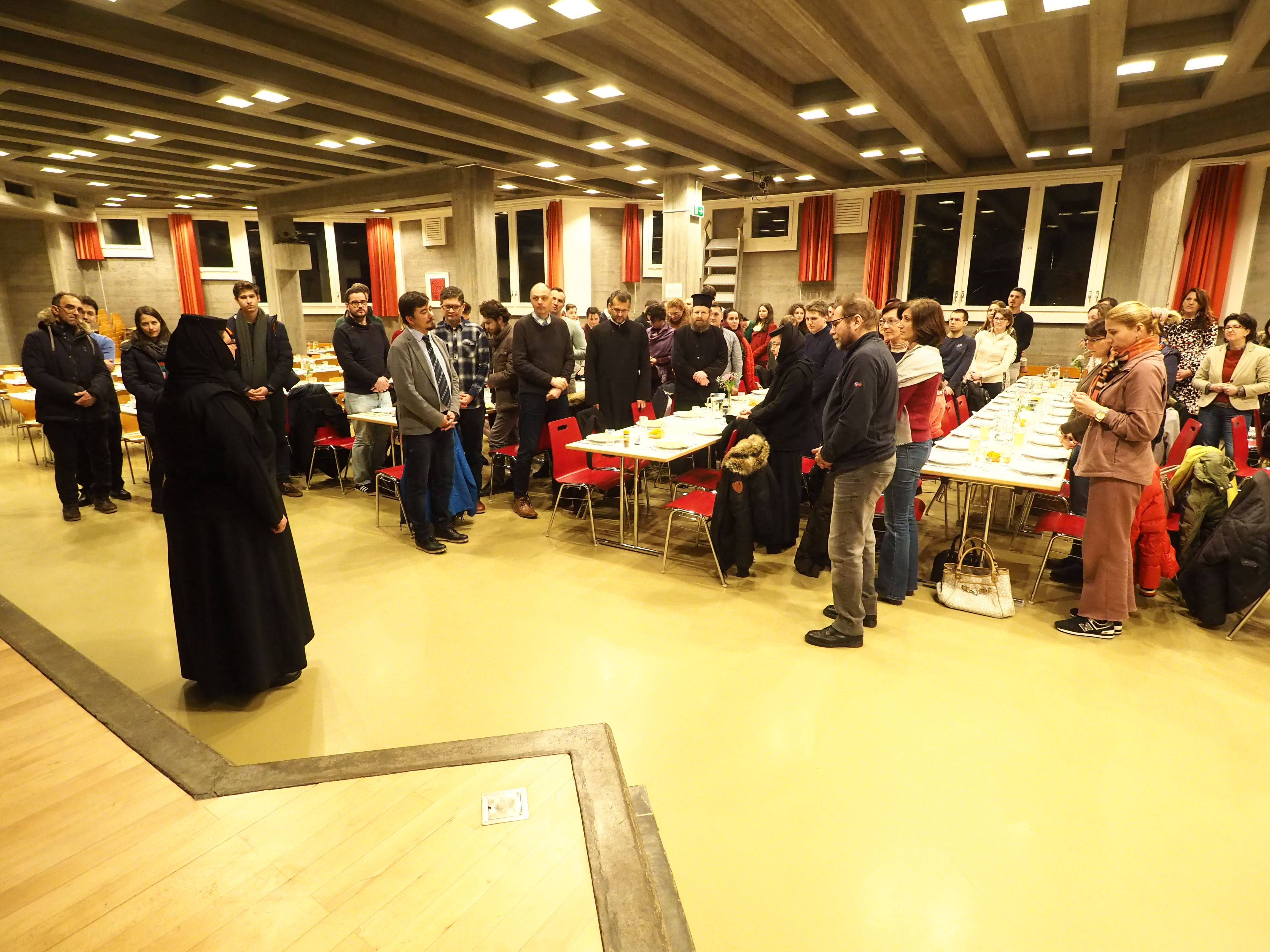 În cadrul acestei excursii, tinerii din cele două Mitropolii, la invitația părintelui Gheorghe Laurenţiu Precup, preot paroh al parohiei “Sfântul Mare Mucenic Gheorghe”, Berna, din cadrul Mitropoliei Ortodoxe Române a Europei Centrale și Meridionale, au participat, alături de credincioșii parohiei, la două conferințe pe teme de credință, duhovnicie și cultură, organizate de Centrul parohial social-cultural „Sfântul Nicolae” din Berna și Parohia Ortodoxă Română „Sfântul Mare Mucenic Gheorghe” din Berna, Solothurn și împrejurimi. Astfel că, sâmbătă, 9 februarie, după-amiază (orele 14:00-16:00) a avut loc prima conferință pe tema „Hrănire și postire în Ortodoxie”, susținută de Preasfinţitul Părinte Sofian Brașoveanul, Episcop Vicar al Arhiepiscopiei Ortodoxe Române a Germaniei, Austriei și Luxemburgului și totodată președintele ATORG. După conferință a urmat un dialog cu Preasfinția Sa (înregistrarea conferinței poate fi găsită aici). Ziua de sâmbătă a fost încununată cu slujba vecerniei.