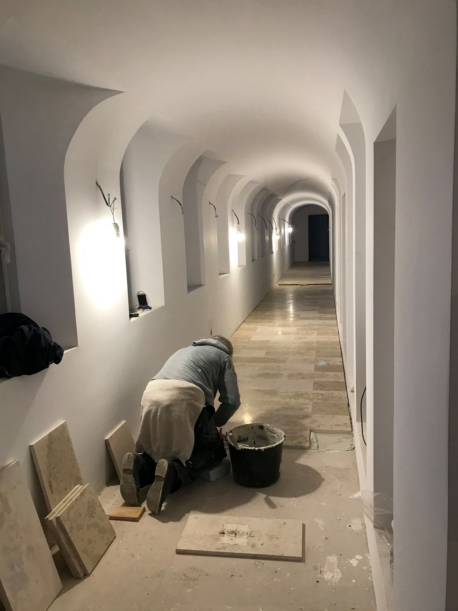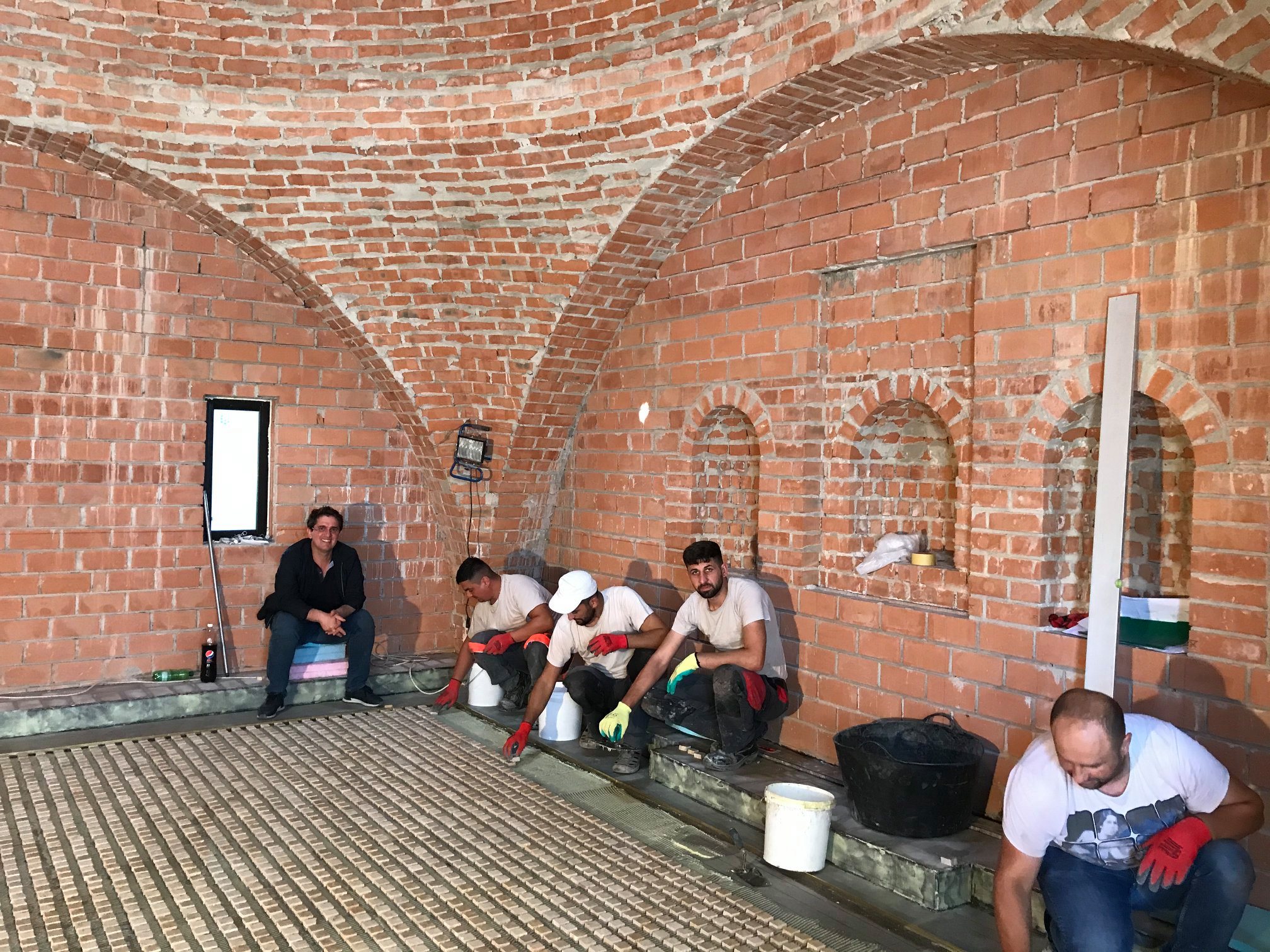 Din darul lui Dumnezeu, lucrările la Aşezământ au continuat cu bine, chiar dacă cu unele greutăţi cauzate de pandemie. Majoritatea constructorilor au ales să rămână pe şantier în ciuda crizei generale. La Sala Crucilor, s-a vopsit tavanul în auriu. În ambele clădiri s-au făcut ultimele lucrări de zidărie uscată şi s-a continuat cu finisajele. În băi s-a pus faianţa, iar afară s-au executat ultimele lucrări de canalizare.