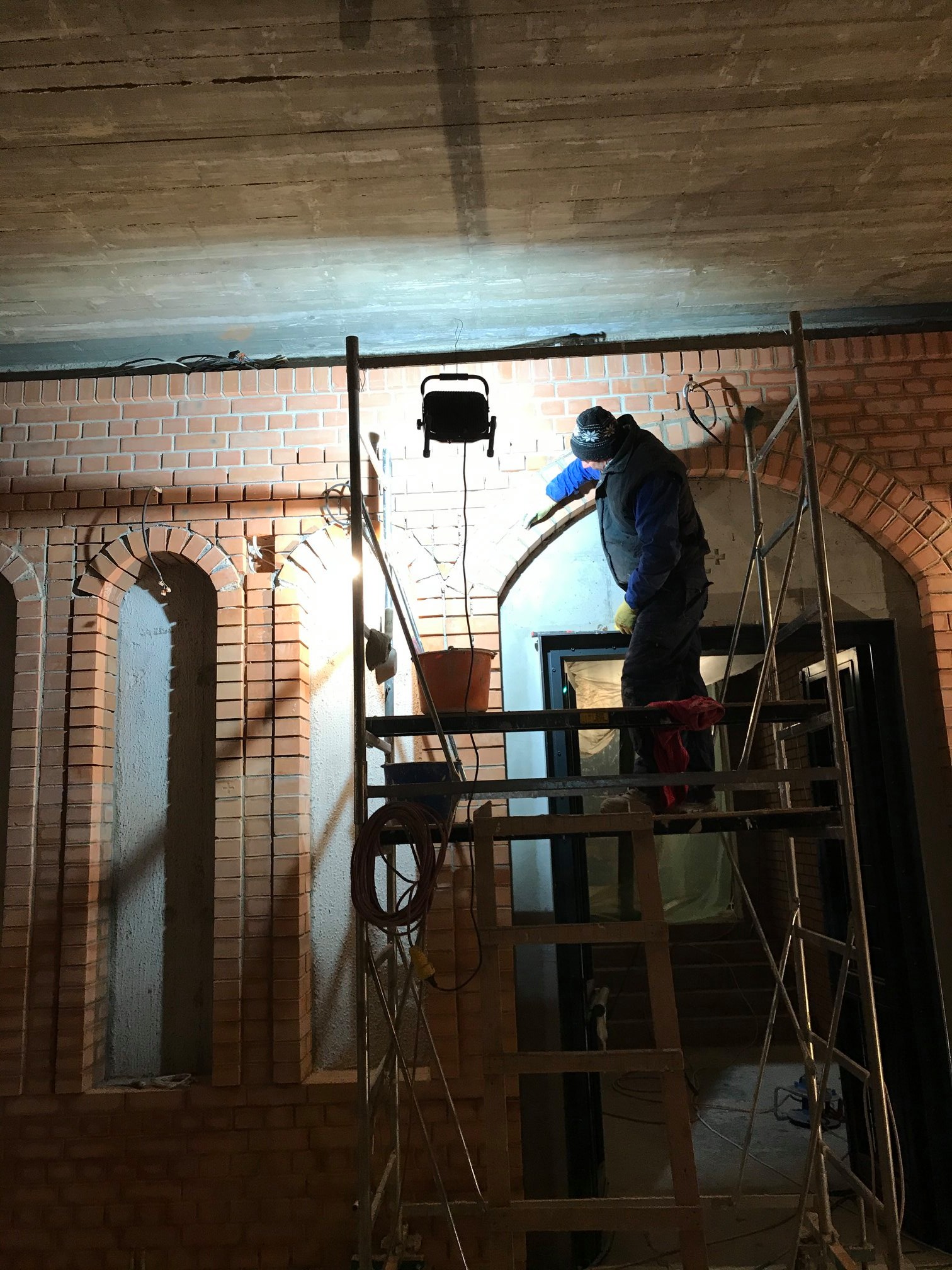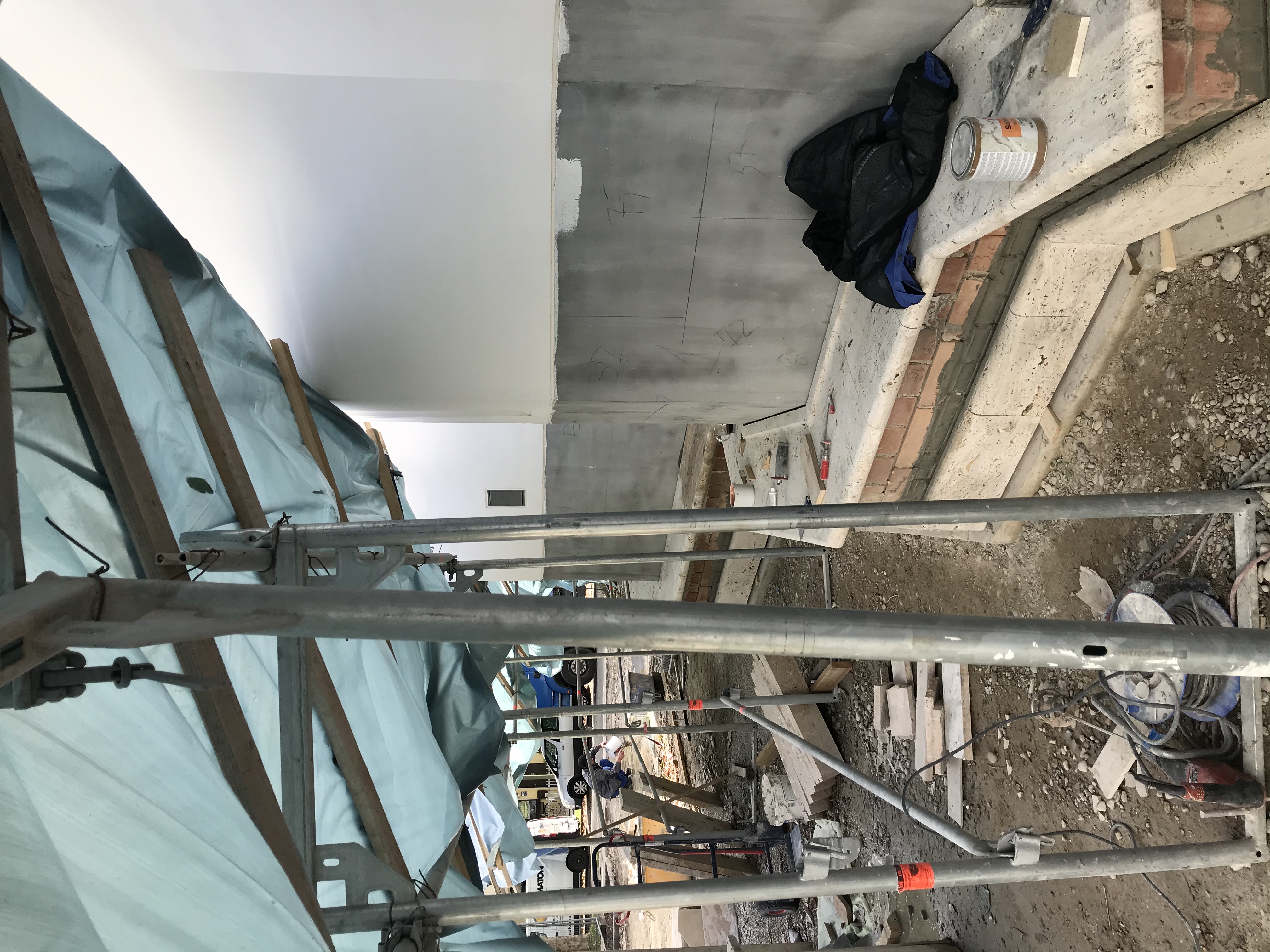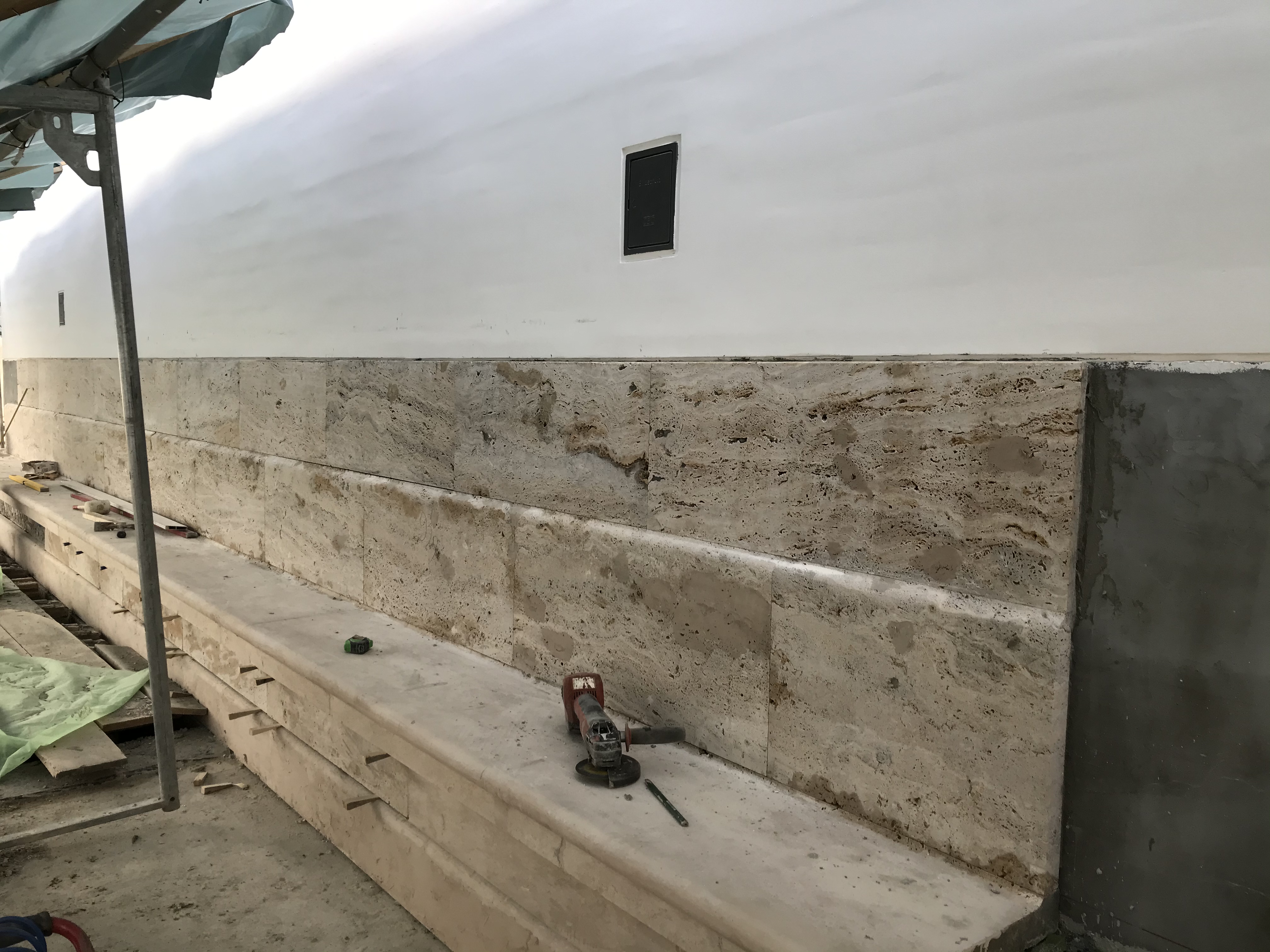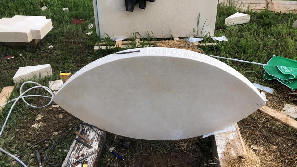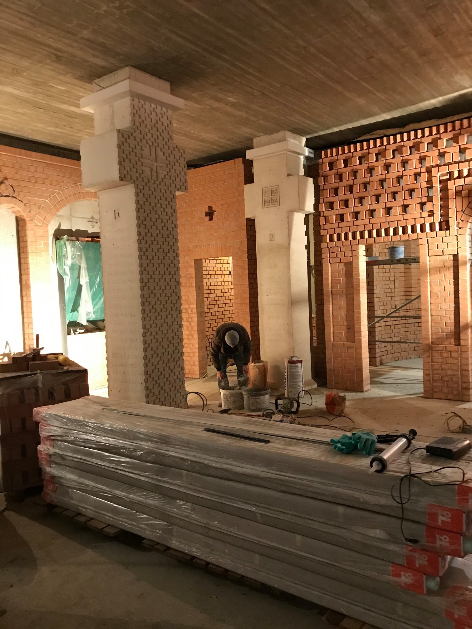 intens s-a lucrat la placarea cu piatră a bazei exterioare a bisericii,