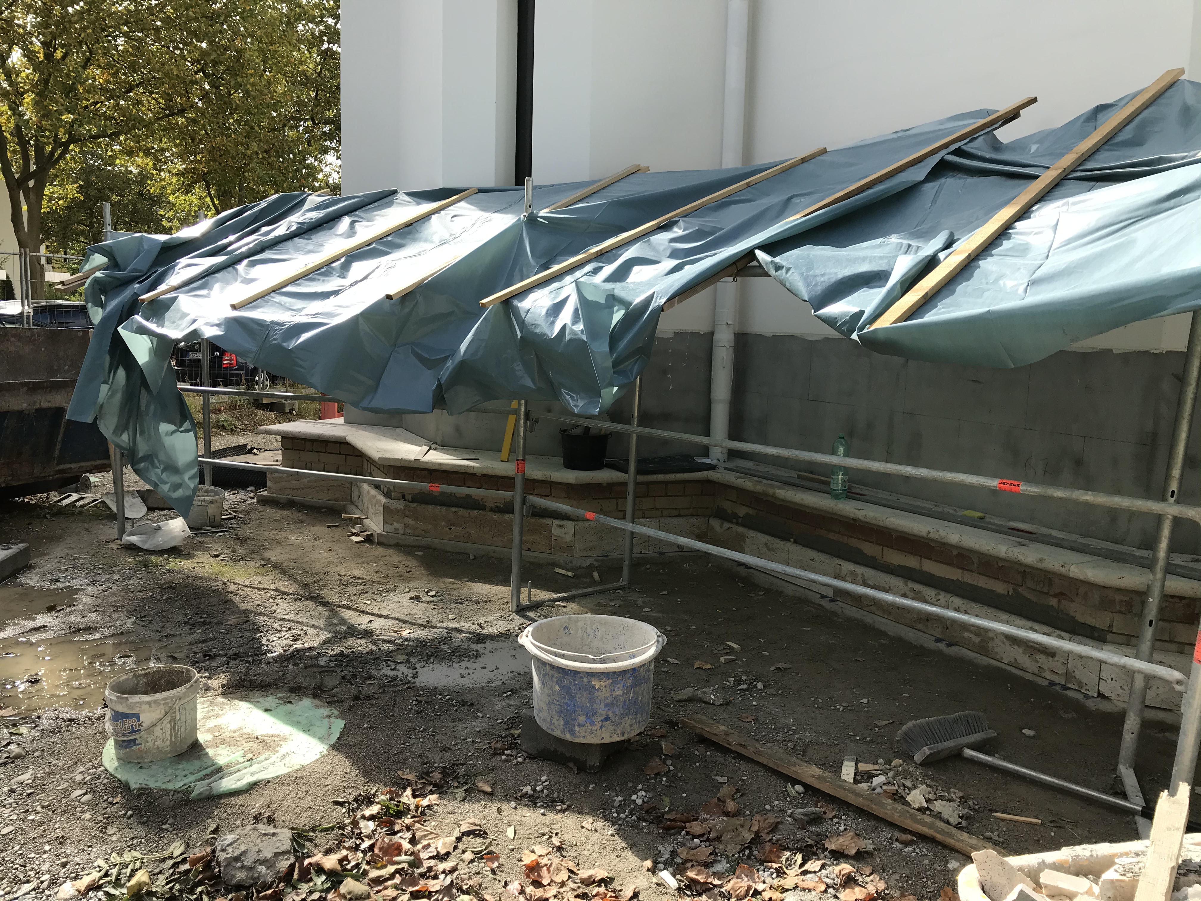 respectiv la realizarea băncii perimetrale care o înconjoară.