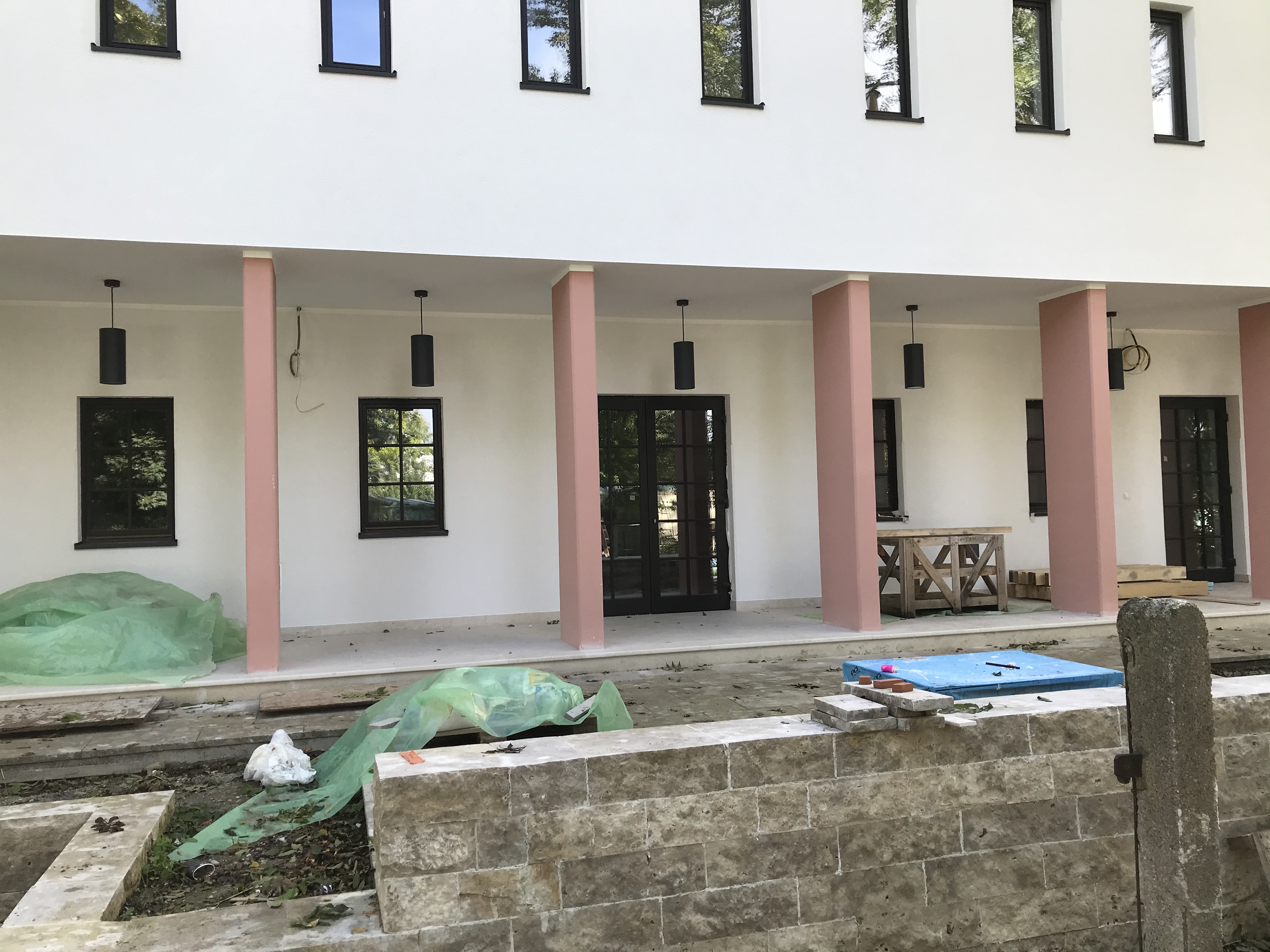 dintre clădiri. În curte, s-a început pavajul cu piatră cubică. Foarte