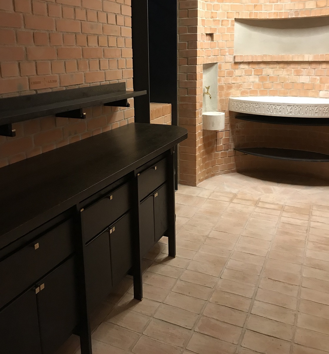 După ce la finele lunii noiembrie a fost montat mobilierul din sala Crucilor de către firma producătoare Pandomour din Ploieşti, în luna decembrie şantierul s-a odihnit, muncitorii bucurându-se de o binemeritată vacanţă. Un cuvânt de deosebită apreciere şi mulţumire se cuvine adresat firmei Pandomour pentru realizarea la o calitate excepţională a elementelor de mobilier. Dumnezeu să-i binecuvinteze pe toţi cei care şi în anul 2020 s-au implicat în diferite moduri în ridicarea Aşezământului nostru: proiectanţi, constructori, donatori, sprijinitori şi rugători.