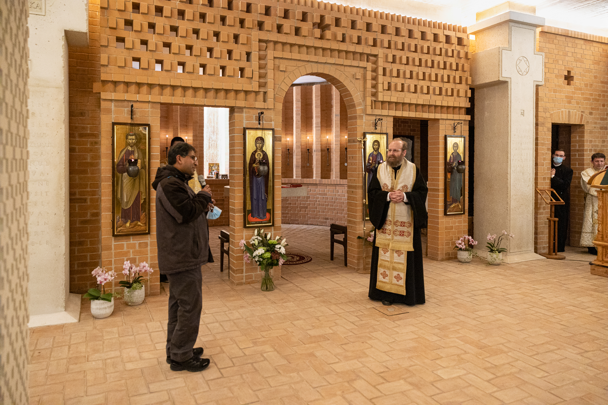 Ne-am bucurat că între cei prezenţi s-a numărat şi părintele Abraham, parohul parohiei St. Quirin din vecinătate, care împreună cu consiliul parohial al acestei parohii ne-a susţinut şi încurajat în multiple feluri pe tot parcursul derulării proiectului. În numele comunităţii catolice vecine şi al vecinilor din Aubing, părintele Abraham ne-a urat, întregii noastre comunităţi, un sincer bun venit în Aubing.
