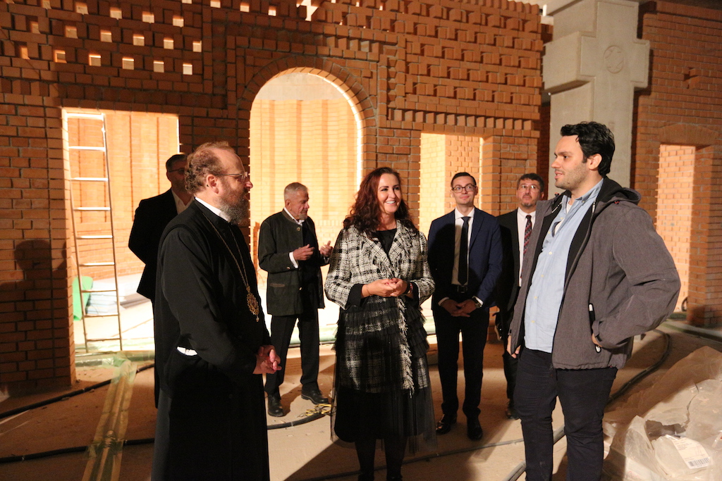 Mai întâi, delegația a participat la Sf. Liturghie, doamna Ministru având prilejul să întâlnească şi să cunoască în mod direct comunitatea noastră, după care a vizitat Aşezământul Bisericesc în construcţie în München-Aubing. Acolo, Domnia Sa a apreciat proiectul ca fiind cel mai elaborat din proiectele Bisericii Ortodoxe Române din afara Ţării, foarte armonios, practic şi cu bună măsura gândit şi executat în mod excepţional. A apreciat, de asemenea, că văzând dezvoltarea extraordinară a proiectului probabil mai mulţi oameni vor dori să şi susţină, inclusiv financiar, realizarea lui, iar odată finalizat Aşezământul va deveni un catalizator al comunităţii româneşti din Germania.