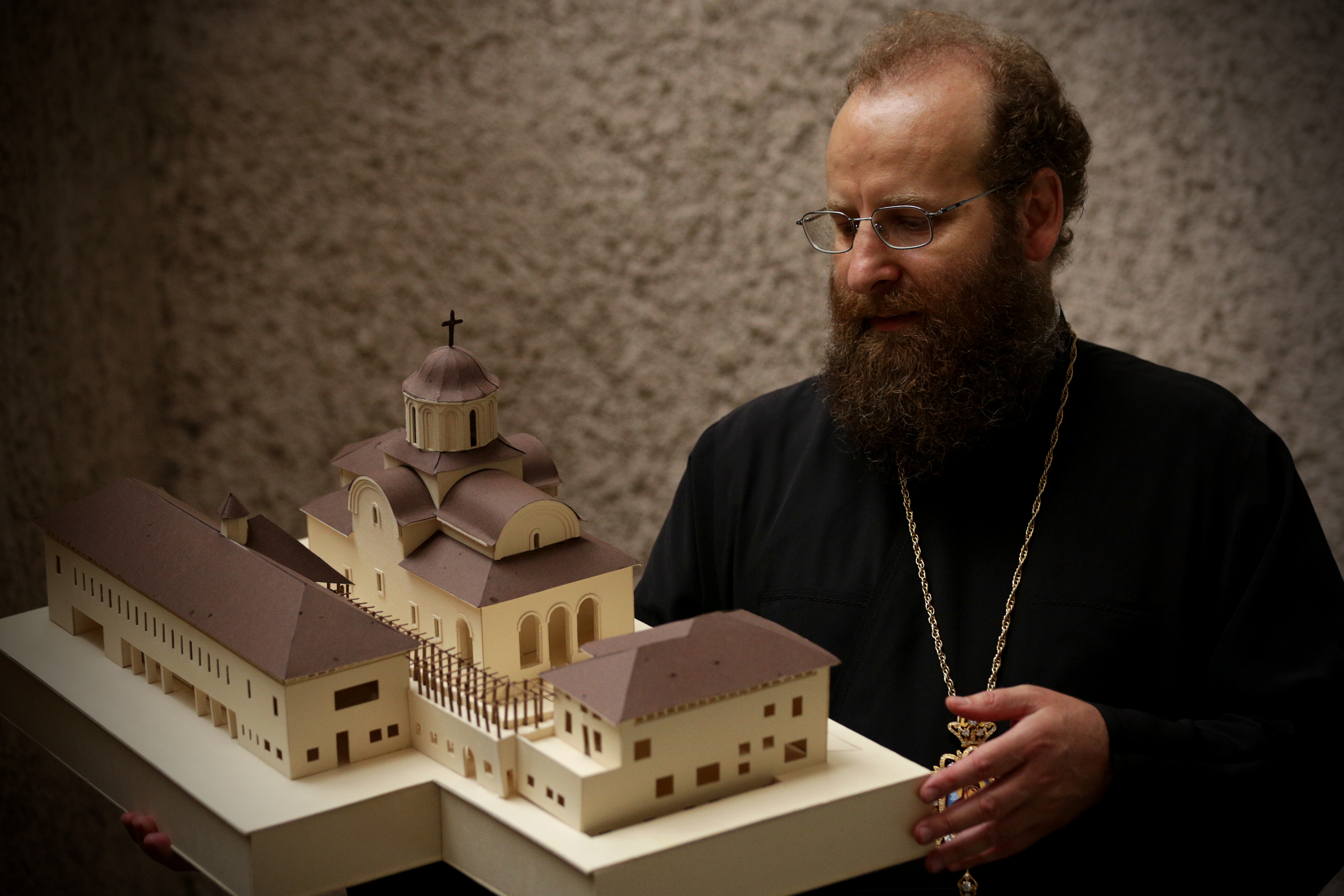 Lucrările de construcţie au început în noiembrie anul trecut şi au avansat excepţional de bine. Aş dori să spun aici că, fiind vorba de un proiect al unui Aşezământ bisericesc românesc, după mai multe căutări şi încercări avute între anii 2009-2013, în martie 2014 am încredinţat proiectarea unei echipe de arhitecţi condusă de dl. arhitect Şerban Sturdza, fost preşedinte al Ordinului Arhitecţilor din Bucureşti. Ceilalţi specialişti, ingineri proiectanţi sunt tot din Bucureşti. Lucrările de construcţie au fost încredinţate contractual Firmei Concelex din Bucureşti, muncitorii fiind în exclusivitate români. Startul şi înaintarea consistentă a lucrărilor au fost făcute posibile şi prin acordarea unor subvenţii foarte consistente din partea Guvernului României prin intermediul Secretariatului de Stat pentru Culte, în valoare totală de peste 2 milioane EUR. Deci este vorba de un proiect identitar românesc, de inspiraţie românească şi realizat în mare măsură prin implicarea românilor şi a Statului Român.