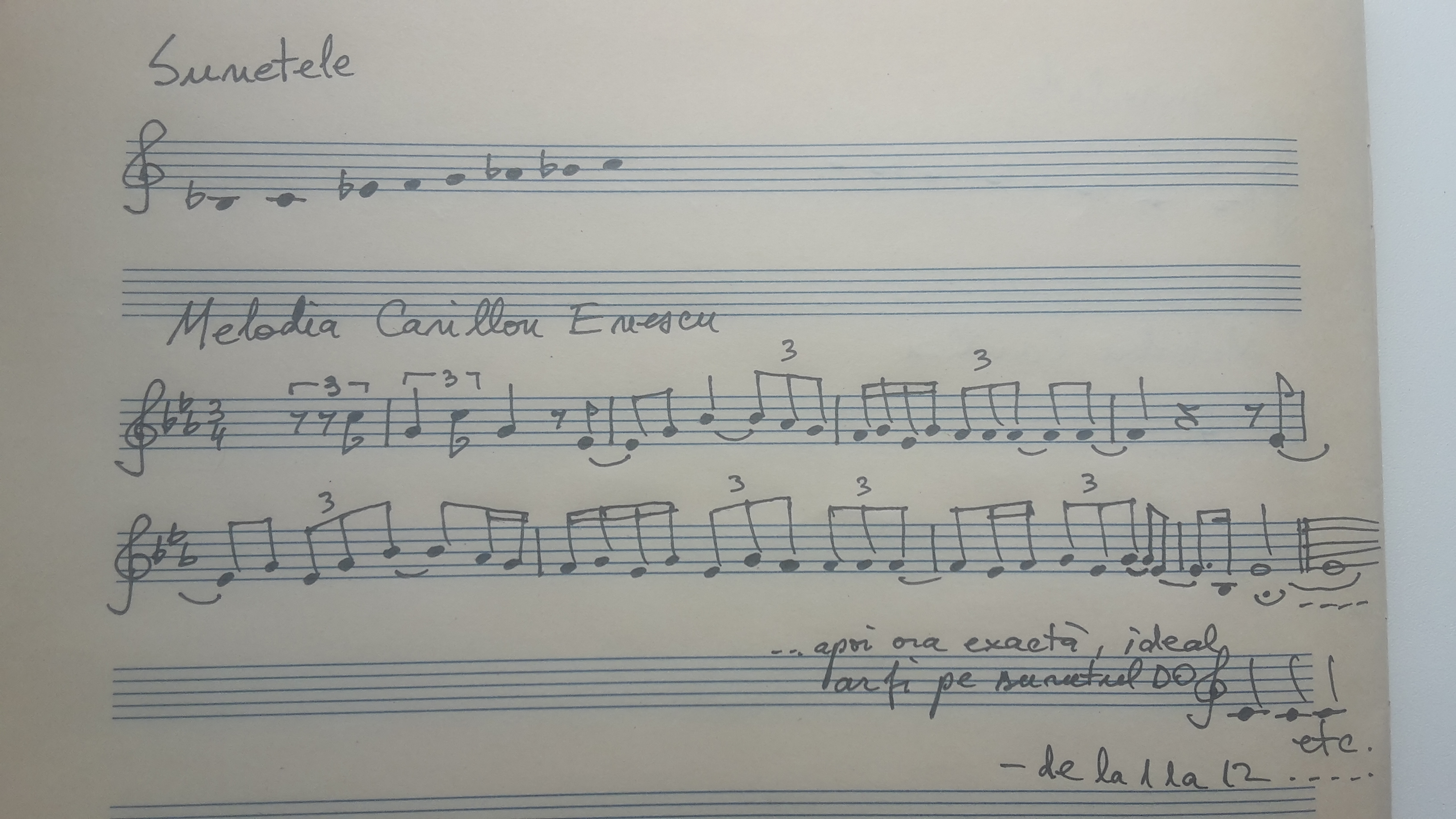 George Enescu, Carillon nocturne, primele măsuri ale manuscrisului aflat în arhiva Bibliotecii Academiei Române.