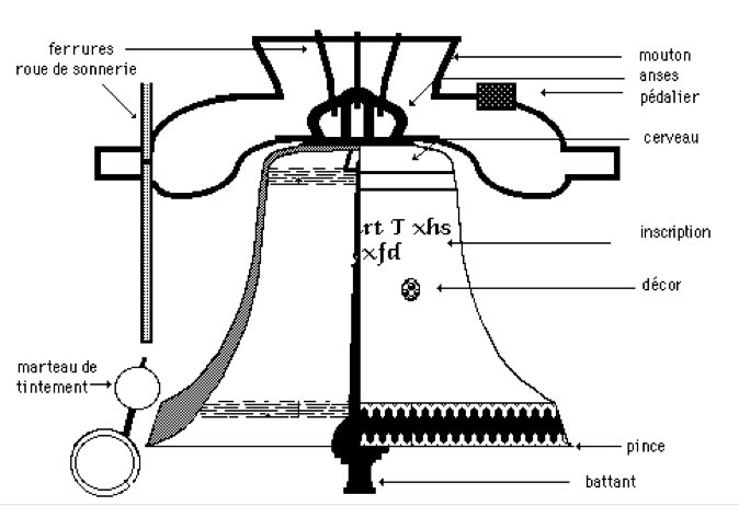 Schema unui clopot dintr-un ansamblu de carillon (preluată din Vocabulaire campanaire editat de société française de campanologie).
