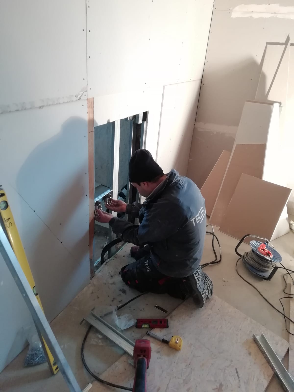 An den Gebäuden B und C ( Pfarrgemeinde-Zentrum bzw. Kloster ) wurden die Arbeiten an den elektrischen und sanitären Gebäudeausrüstungen, die Arbeiten am Trockenbau und verschiedene andere Feinarbeiten (einschließlich Fliesenlegen) fortgesetzt. Diese Aktionen sind in einem Umfang von 90 % fertig gestellt. In diesen beiden Gebäuden wurden weiter Türen und Fenster eingebaut und die damit unmittelbar verbundenen Feinarbeiten durchgeführt. Der Holzfußboden, bzw. der Parkettfußboden wurde in beiden Gebäuden in einem Umfang von etwa zwei Drittel verlegt.