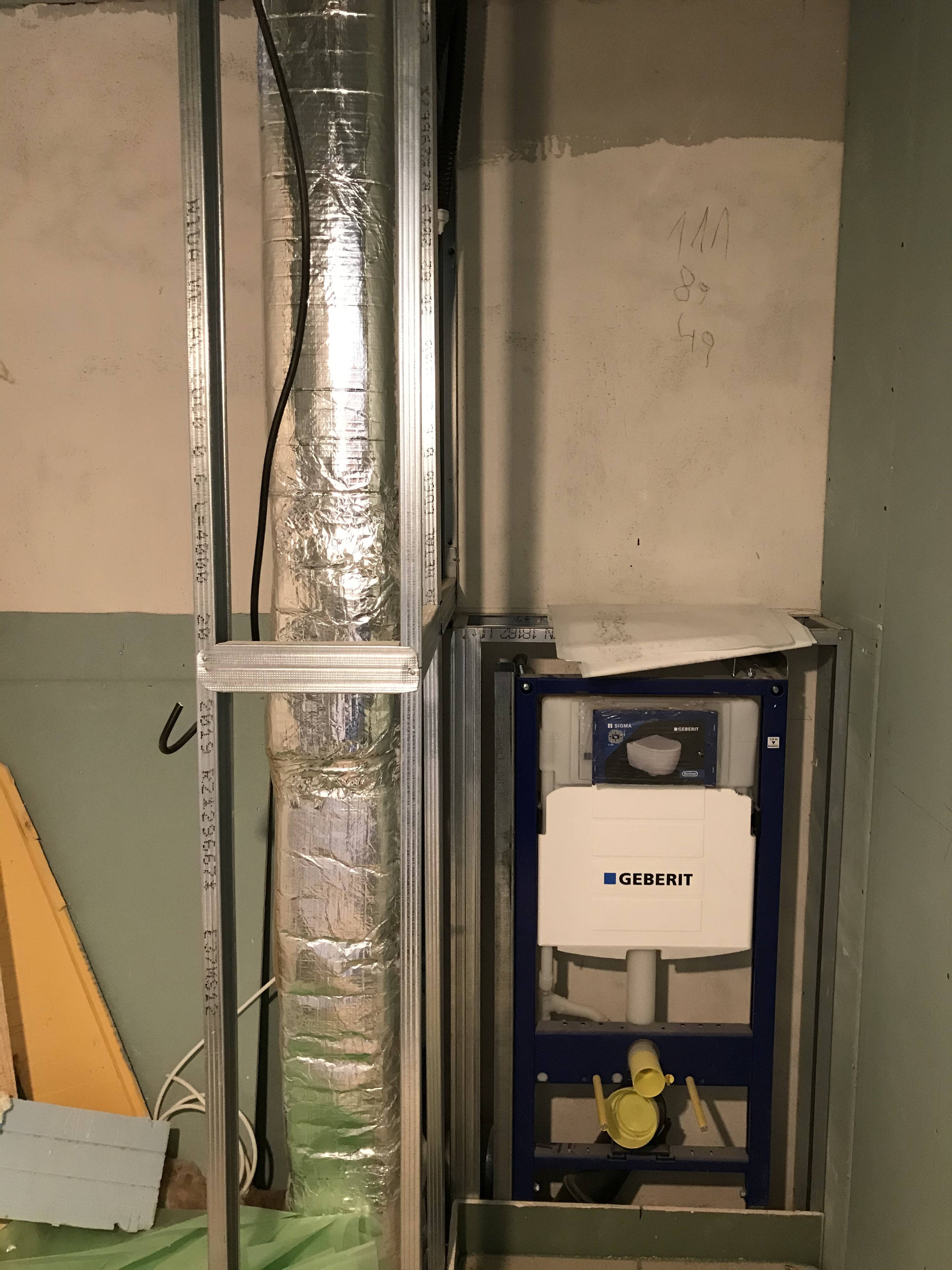 Als Fortsetzung der Außenarbeiten folgten die Wasser - und Abwasser-Leitungen, die Gas und Strom Leitungen, die Verbindungen zwischen den drei Gebäuden, als auch der Anschluss an das städtische Wasser- und Gasnetz.