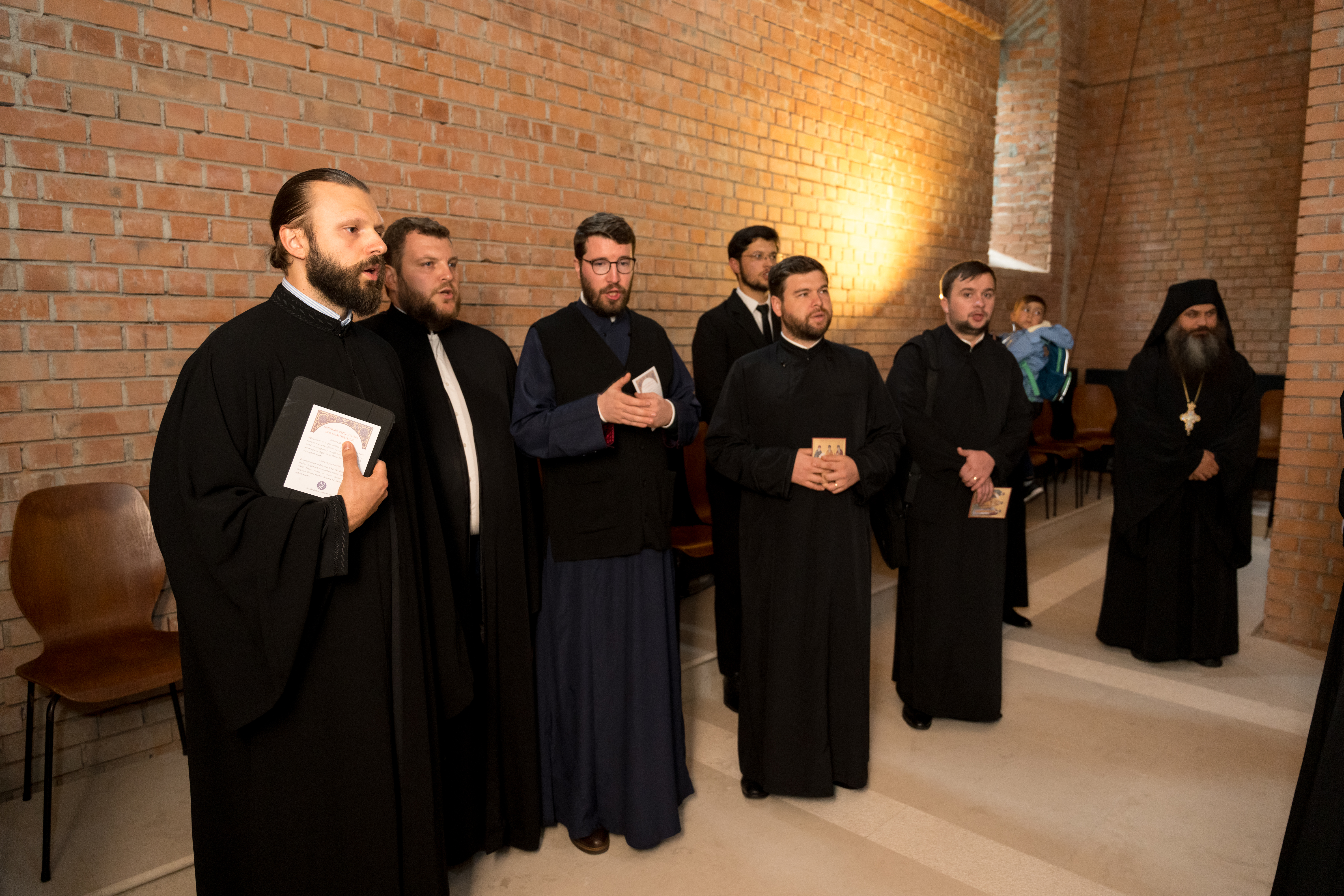 După împărtășirea clericilor, Înaltpreasfințitul Părinte Mitropolit Serafim a ținut un cuvânt de învățătură în care a lăudat râvna slujitorilor și a credincioșilor din München și din întreaga Mitropolie pentru construirea Așezământului, iar apoi a explicat însemnătatea Sfintei Cruci în viața de zi cu zi a creștinului ortodox.