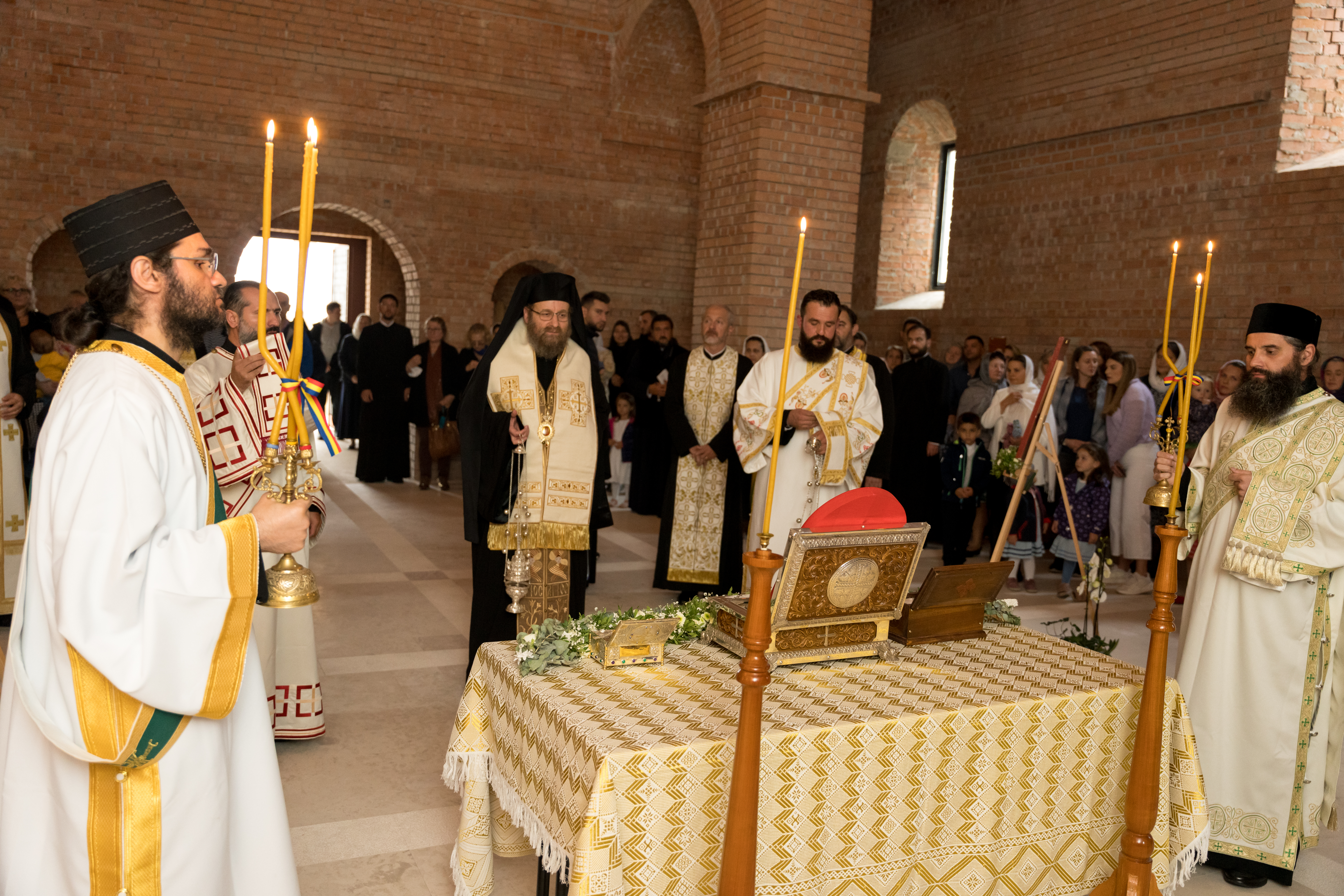 În continuare, după un cuvânt explicativ al părintelui profesor Daniel Benga, care a tălmăcit o parte din semnificaţiile slujbei sfinţirii bisericii, pe altarul proaspăt sfințit s-a săvârșit Sf. Liturghie, într-o atmosferă de mare bucurie și înălțare duhovnicească.