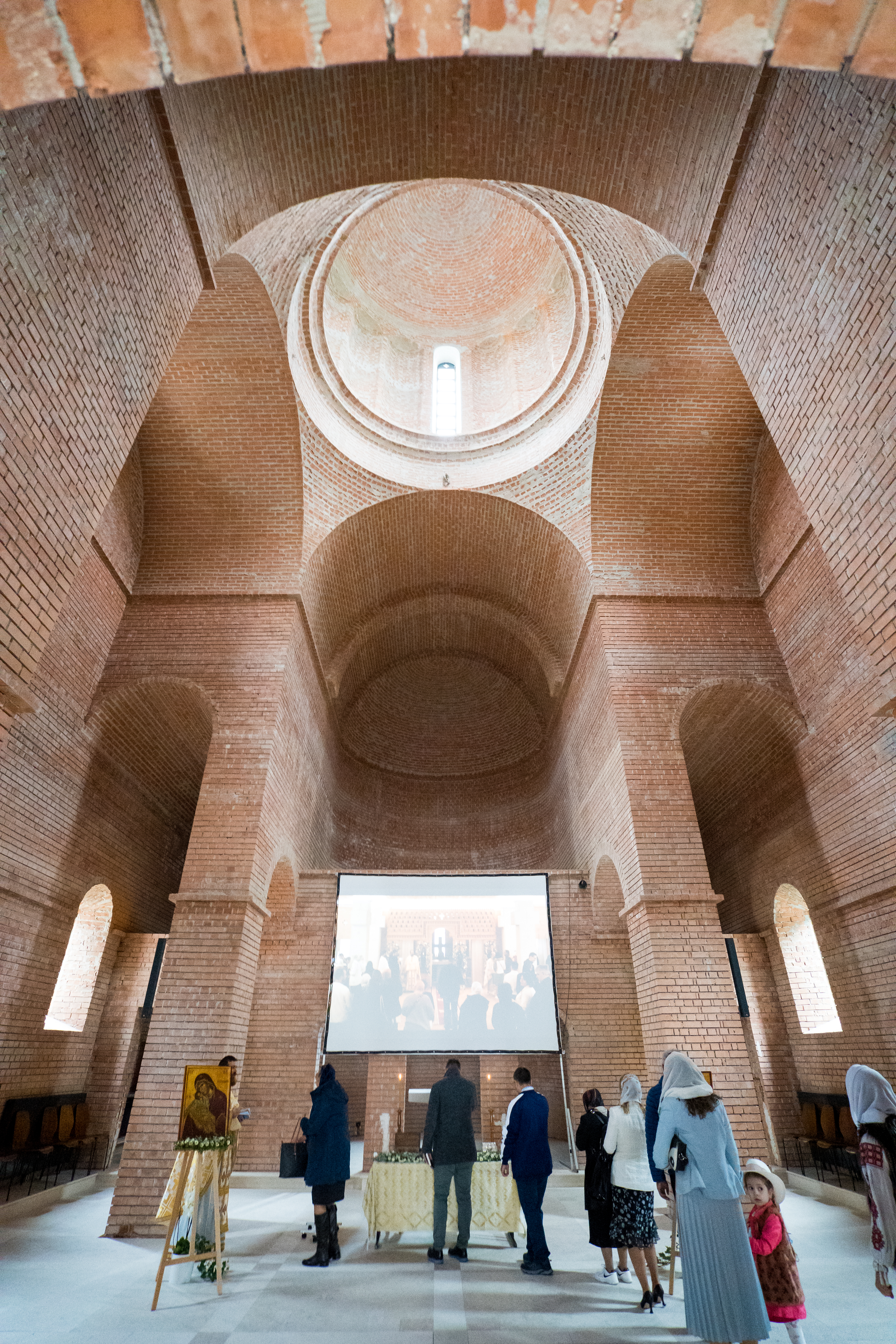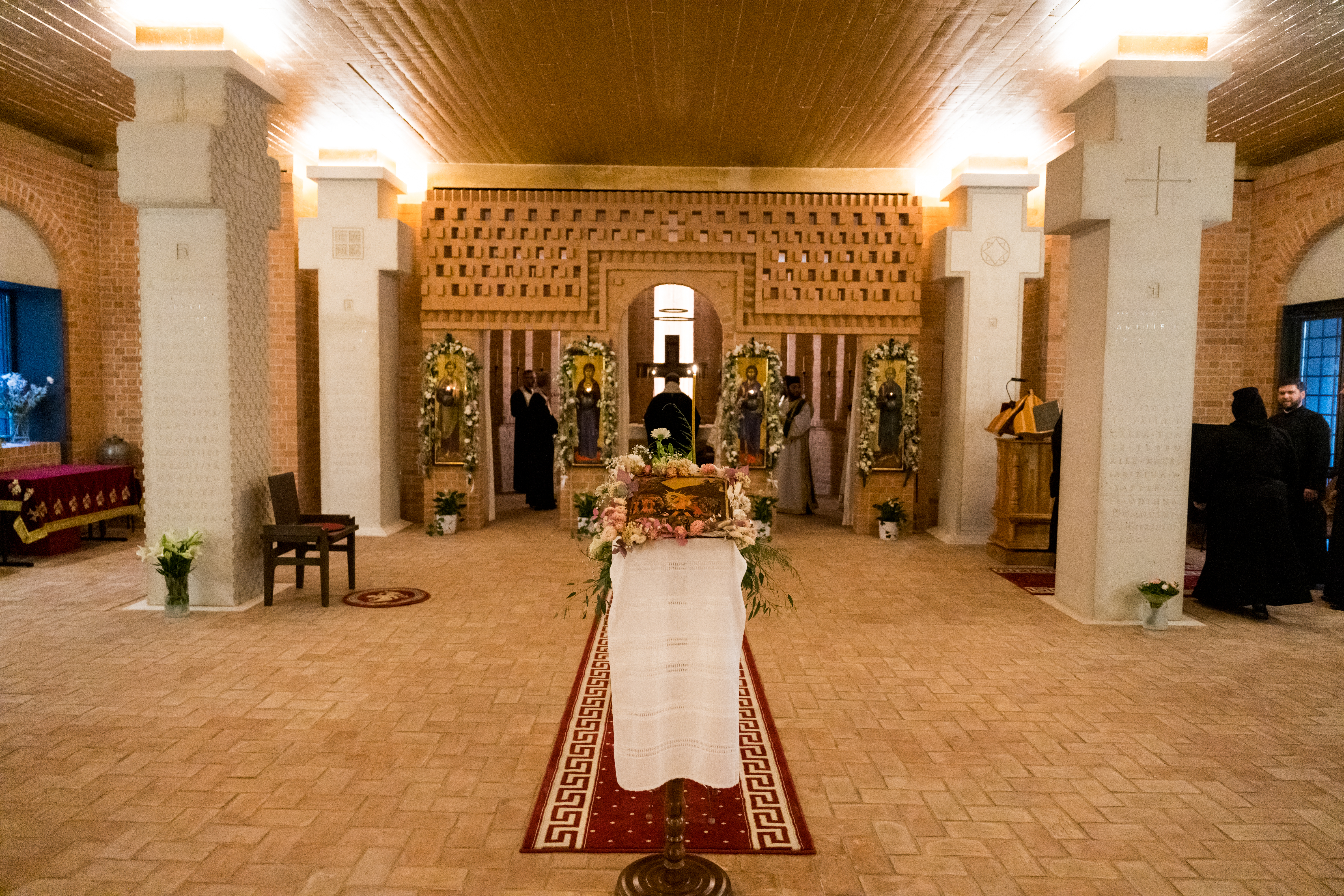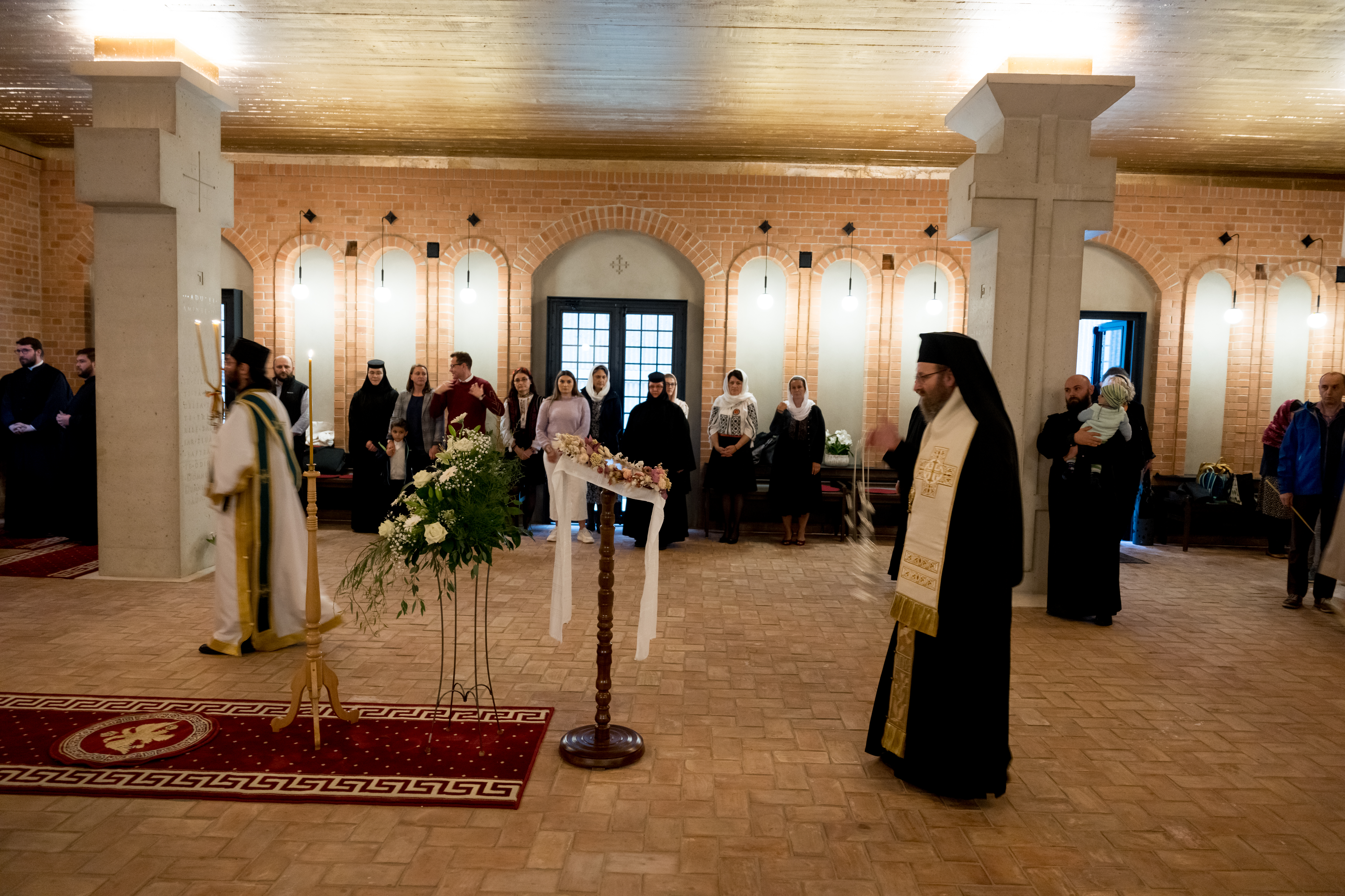 Participarea cu evlavie a multor credincioși în port popular românesc, cântarea executată cu măiestrie la strană de grupul condus de diaconii Vlad Roșu, Alin Buliga şi George Ștefan, invitați special pentru a completa grupul coral parohial format în jurul măicuțelor Centrului Bisericesc, au completat şi împlinit frumusețea și armonia Sălii Crucilor și a întregului Așezământ, făcând ca biserica de zid să conglăsuiască cu cea din sufletele oamenilor într-o armonie desăvârșită.