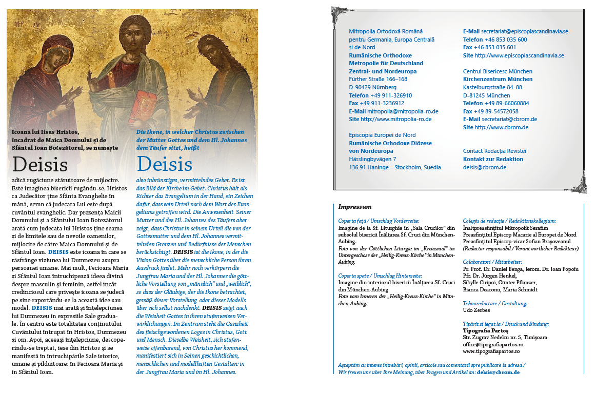 A apărut noul număr al revistei Deisis (29/2021), dedicat Ortodoxiei din diaspora, cinstirii celor adormiți în Domnul, precum și importanței spirituale și culturale a cimitirelor. Tematica revistei se referă la cele două teme principale proclamate de Sfântul Sinod pentru anul 2021, dar conține și două articole importante dedicate tinerilor din diaspora românească. Este o ediție specială dedicată chiar celor care trăiesc în afara granițelor țării, dar cu ea în suflet, precum și cu dorul de locurile natale.