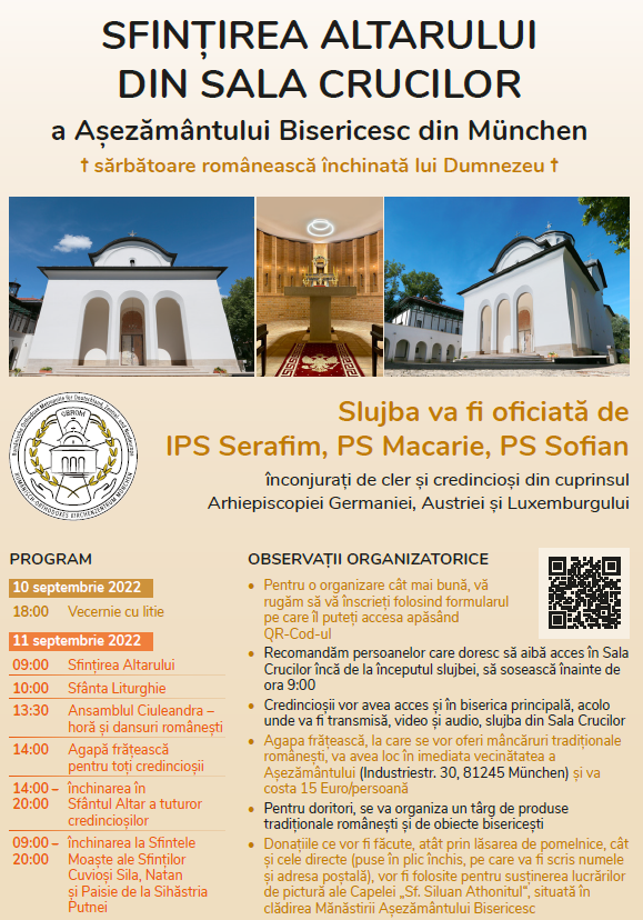 Evenimentul marchează un moment de împlinire şi de bucurie atât pentru comunitatea credincioşilor din München şi Bavaria, cât şi pentru cei din întreaga Germanie şi de pe tot cuprinsul Arhiepiscopiei noastre. Tocmai din acest motiv, sunt invitaţi şi aşteptaţi cu prioritate să participe, pe lângă obştea credincioşilor din München, preoţi şi credincioşi din întreaga Arhiepiscopie.