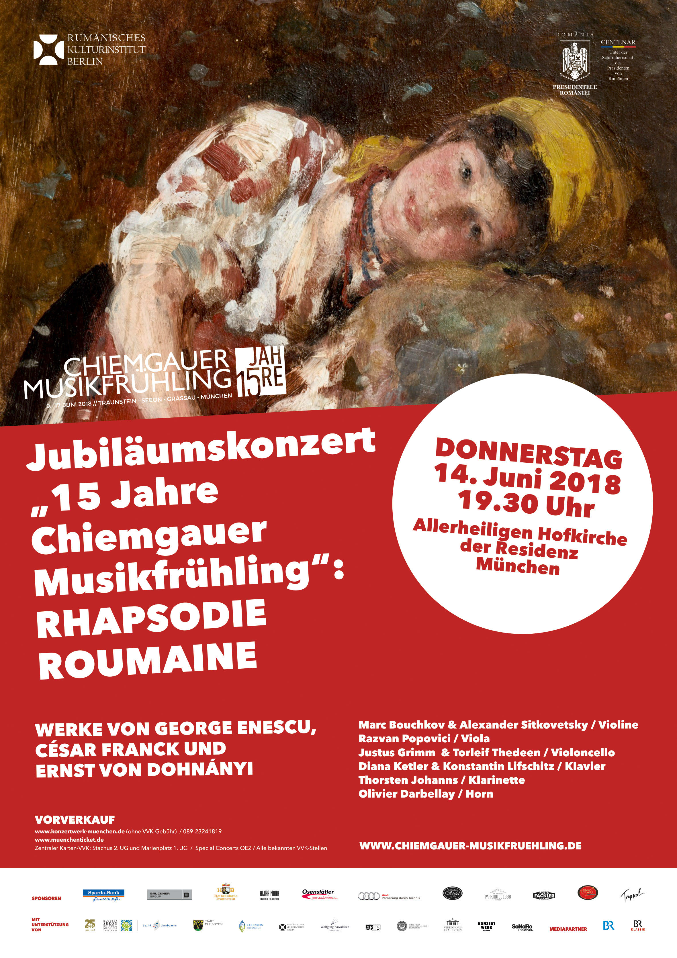 Festivalul „Chiemgauer Musikfrühling“, înființat în 2003, sărbătorește 15 ani de existență în 2018, a devenit un reper în viața muzicală a Bavariei. Violistul Răzvan Popovici și pianista Diana Ketler, directorii festivalului, au dorit să încoroneze această ediție aniversară cu un concert festiv în centrul metropolei bavareze.