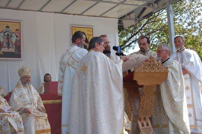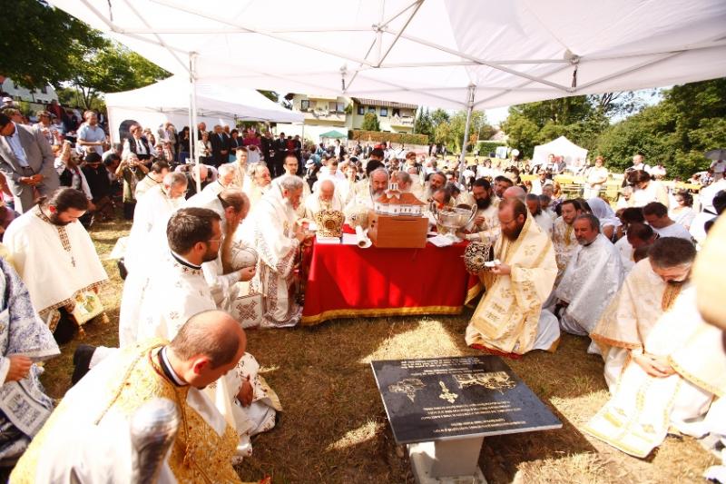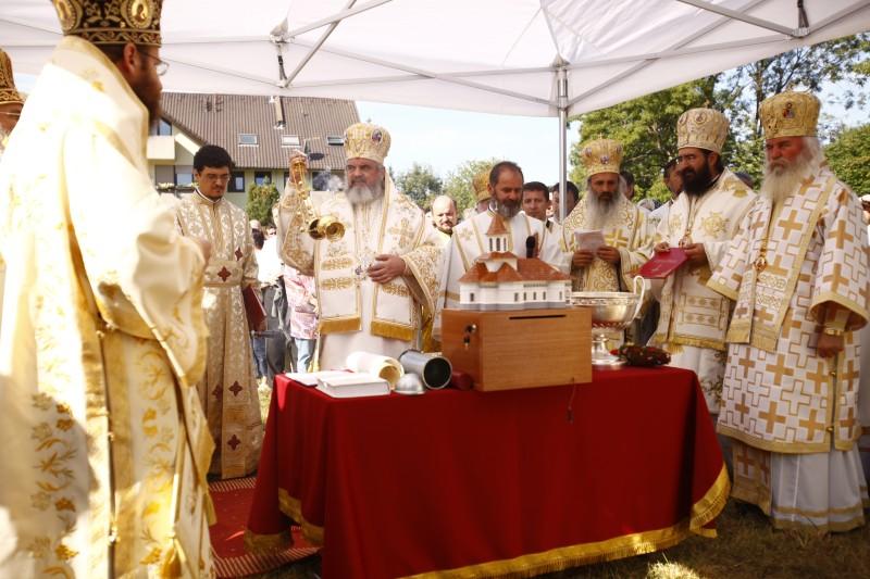 Hrisovul punerii pietrei de temelie a fost citit de către Preasfinţitul Sofian Braşoveanul, Episcop-vicar al Arhiepiscopiei Germaniei, Austriei şi Luxemburgului, care este însărcinat cu coordonarea proiectului.
