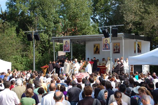 Duminică, 11 septembrie 2011, sute de credincioşi români au participat la slujba punerii pietrei de temelie pentru noul Centru Bisericesc Ortodox din München, cu hramurile Înălţarea Sfintei Cruci şi Sfântul Ierarh Calinic de la Cernica. Slujba a fost săvârşită de Preafericitul Părinte Patriarh Daniel în continuarea Sfintei Liturghii, la care au participat numeroși membri ai Sfântului Sinod al Bisericii Ortodoxe Române: Înaltpreasfințitul Teofan, Mitropolitul Moldovei și Bucovinei, Înaltpreasfințitul Laurenţiu, Mitropolitul Ardealului, Înaltpreasfințitul Serafim, Mitropolitul Ortodox Român al Germaniei, Europei Centrale și de Nord, Înaltpreasfințitul Iosif, Mitropolitul Ortodox Român al Europei Occidentale și Meridionale, Înaltpreasfinţitul Arhiepiscop Ioan, Episcopul Covasnei şi Harghitei, Preasfințitul Sofian Brașoveanul, Episcop-vicar al Arhiepiscopiei Ortodoxe Române a Germaniei, Austriei și Luxemburgului, dar şi ierarhi ortodocşi ai altor jurisdicţii naţionale din Germania: Inaltpreasfintitul Augustinos, Mitropolitul grec al Germaniei şi Exarh al Europei Centrale, care este şi preşedintele Conferinţei Episcopilor Ortodocşi din Germania, Înaltpreasfintitul Feofan, Arhiepiscopul rus al Berlinului şi al Germaniei, Preasfinţitul Constantin, Episcopul sârb al Europei Centrale şi Preasfinţitul Agapit de Stuttgart, Episcop-vicar al Arhiepiscopiei Ruse din afara graniţelor, precum și peste 30 de preoți și diaconi din Arhiepiscopia noastră şi din Bisericile Ortodoxe surori. Pentru a-l întâmpina pe Preafericirea Sa a venit şi Întâistătătorul Bisericii Ruse din Afara Granițelor, Arhiepiscopul Mark Arndt de Berlin al întregii Germanii.