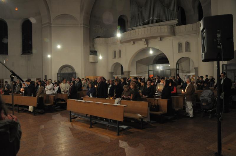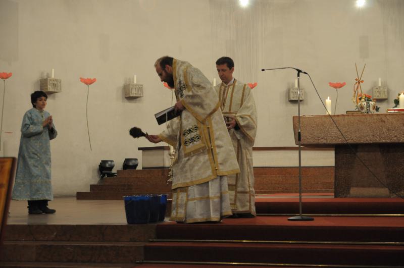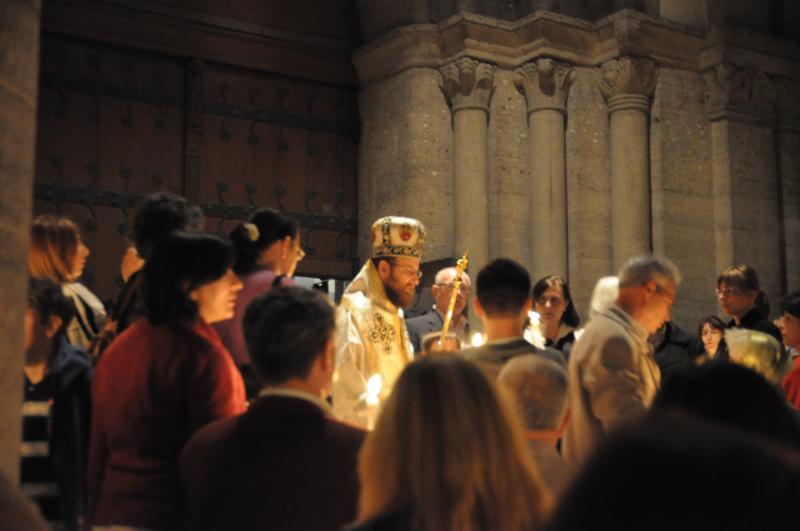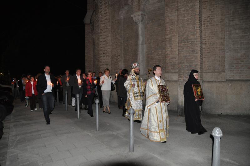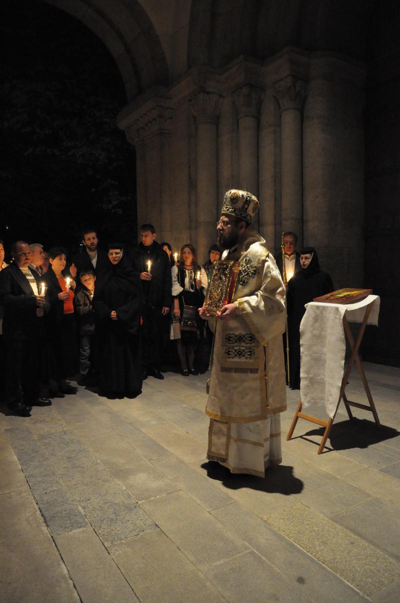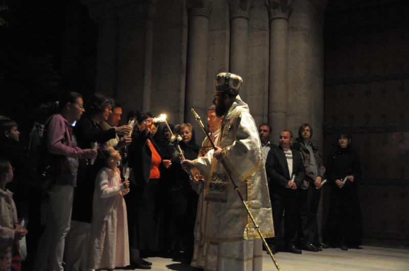 Slujba Învierii a început cu ritualul împărţirii luminii urmat de o procesiune în jurul bisericii. La sfârşitul Sfintei Liturghiei s-a împărţit pâinea binecuvântată, numită „Paşti”, precum şi tradiţionalul ou roşu şi o felie de cozonac. Cei care nu au avut posibilitatea participării la întreaga slujbă, au primit aceste daruri pascale, începând cu orele 22:00, la ieşirea din biserică. Bucuria Paştilor îşi găseşte însă adevăratul sens şi împlinirea mai ales în participarea la Sf. Liturghie şi în împărtăşirea cu Sfintele Taine.