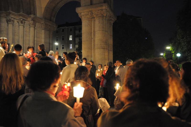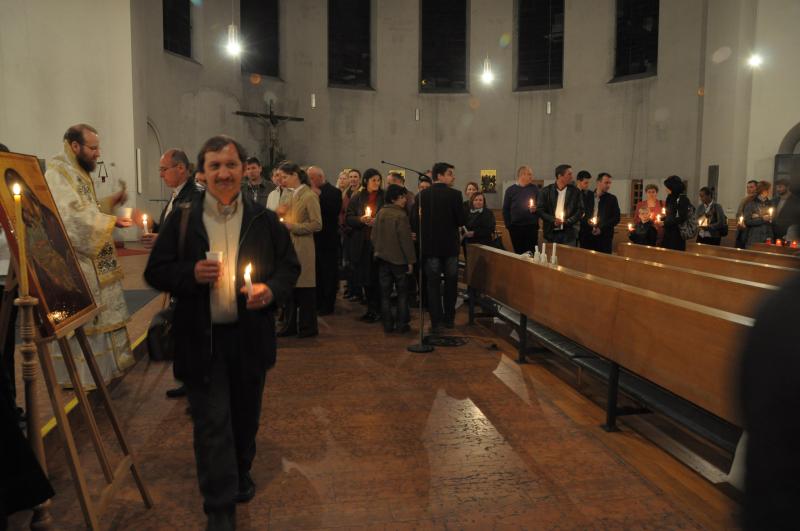 Având în vedere numărul mare de credincioşi care vin la biserică pentru a se împărtăşi de bucuria Praznicului Învierii Domnului, Preasfinţitul Părinte Episcop Sofian Braşoveanul a săvârşit în anul acesta Slujba Învierii împreună cu Utrenia Paştilor şi cu Liturghia Învierii în biserica St. Rupert (Kiliansplatz 1, 80339 München, staţia de U-Bahn „Heimeranplatz”, liniile U4 şi U5), sâmbătă seara, 23 aprilie, între orele 21:00-00:45.