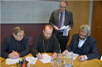 La semnarea acestui act Preasfinţitul Sofian a fost însoţit de P.C. Pr. Prof. Mircea Basarab.