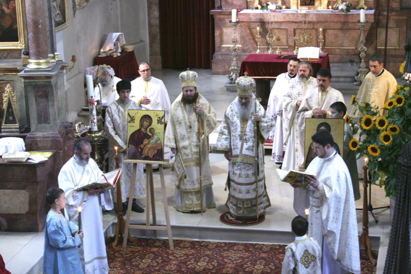 Sfânta Liturghie arhierească, ţinută în biserica Alte Haidhauser Kirche, i-a avut în frunte pe Înaltpreasfinţitul Părinte Serafim, Mitropolitul Ortodox Român al Germaniei, Europei Centrale şi de Nord şi pe Preasfinţitul Părinte Sofian Braşoveanul, Episcopul-vicar al Arhiepiscopiei Germaniei, Austriei şi Luxemburgului, înconjuraţi de un sobor de preoţi din München şi alte oraşe (Augsburg, Nürnberg, Rosenheim, Schwäbisch Gmünd, Traunreut), veniţi împreună cu credincioşi pentru a spori frumuseţea prăznuirii şi bucuria comuniunii.