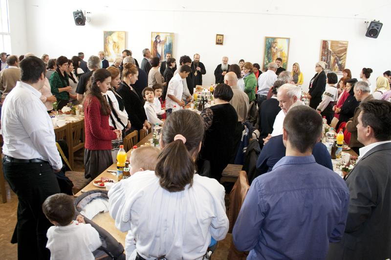 Bucuria comuniunii cu Hristos şi cu semenii din Sfânta Liturghie a fost continuată în cadrul agapei organizate de comunitatea parohială. În timpul acesteia, în semn de recunoştinţă şi preţuire, s-au acordat „Gramate Mitropolitane” credincioşilor care au donat cel puţin o unitate de teren pentru construcţia Aşezământului Bisericesc şi s-a făcut o prezentare a planurilor arhitectonice ale aşezământului care urmează a fi construit. Atât copiii cât şi tinerii din comunitate au prezentat câte o piesă de teatru cu conţinut creştin, spre bucuria şi încântarea tuturor celor prezenţi. S-a putut constata încă o dată adevărul cuvintelor psalmistului David: „Bine este să fie fraţii împreună!”