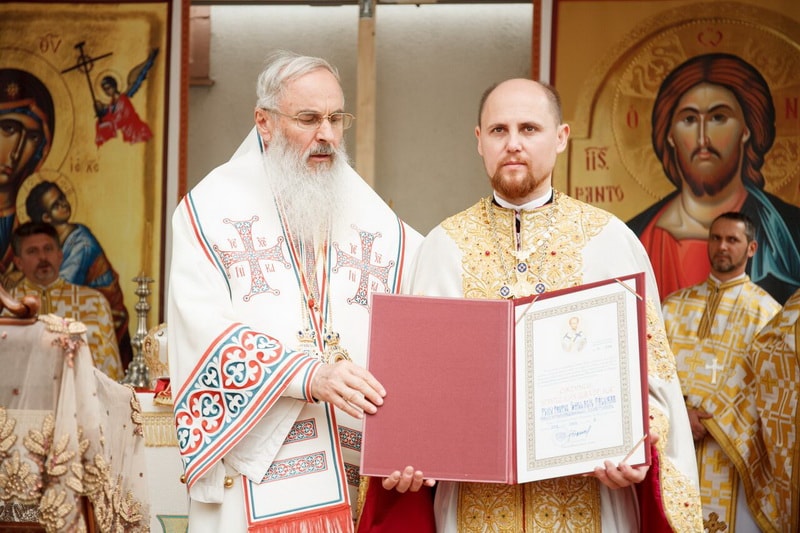 Activitatea deosebită a Preacuviosului Părinte Protosinghel Ghelasie Păcurar ca păstor al comunităţii româneşti începând din 2007, dar mai ales în ceea ce priveşte obţinerea bisericii pentru parohie, precum şi osteneala sa neobosită pentru renovarea, pictarea şi înzestrarea lăcașului, a fost răsplătită de Preafericitul Părinte Patriarh Daniel cu ordinul „Sfântul Ioan Gură de Aur” acordat în mod special ctitorilor de biserici. Cuvântul Preafericitului Părinte Daniel a fost citit de către Preasfinţitul Părinte Sofian, iar Crucea Sfântului Ierarh Ioan Gură de Aur a fost înmânată Părintelui Ghelasie Păcurar de către Înaltpreasfinţitul Părinte Serafim, care la rândul său a lăudat devotamentul părintelui pentru parohia sa şi a arătat aprecierea de care acesta se bucură atât în rândul credincioşilor din Aschaffenburg şi Würzburg, cât şi în rândul numeroşilor fii duhovniceşti pe care sfinţia sa îi are, printre care și slujitori ai altarelor.