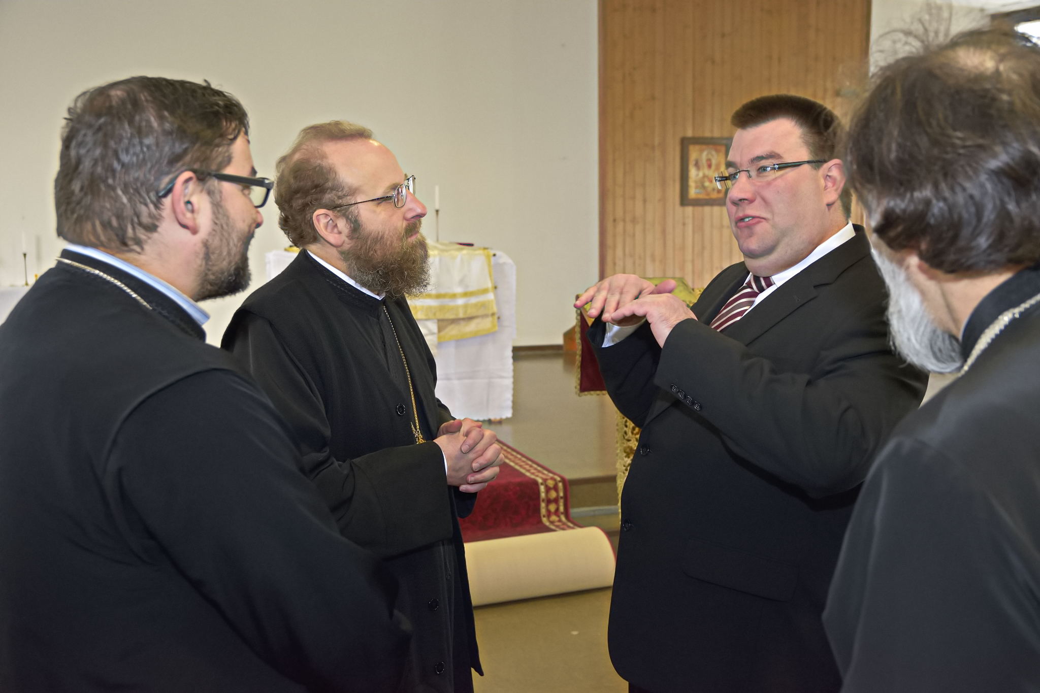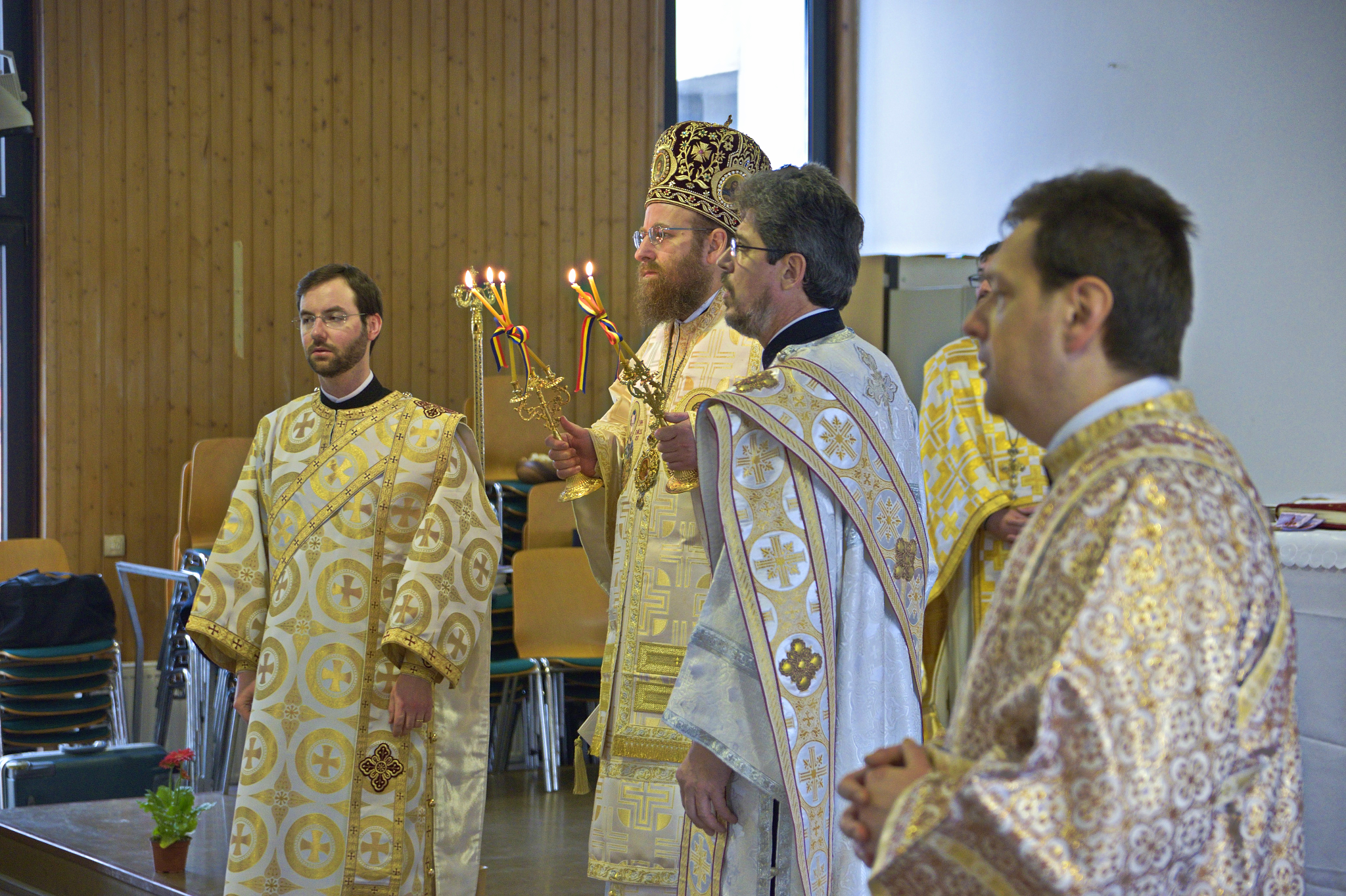 Alături de Preasfințitul Părinte Sofian a slujit părintele protopop Ștefan Anghel de la parohia din Offenbach am Main, părintele diacon George Țapciuc de la Centru Bisericesc din Munchen și părintele arhidiacon Gavril Gemănaru de la parohia din Offenbach am Main. Părintele protopop Ștefan Anghel este unul din cei mai vechi clerici ai Arhiepiscopiei Germaniei, care a trecut în revistă începutul parohiei din Offenbach de acum peste 40 de ani și dezvoltarea parohiei din Offenbach, parohie de elită a Arhiepiscopiei Germaniei care deține locaș propriu de slujire și alte spații adiacente unde se desfășoară mai multe proiecte. Până de curând credincioșii din zona Frankfurt aveau doar parohia din Offenbach în apropiere, parohia care a devenit neâncăpătoare pentru afluxul masiv de români din această parte a Germaniei.